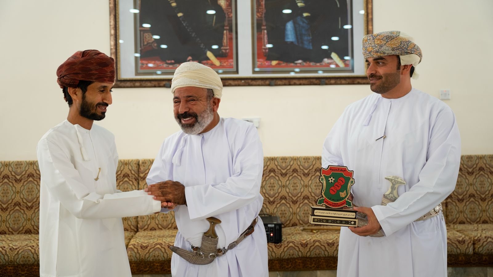 وفي ختام الفعالية، قدّم رئيس فريق الجزيرة هدية تذكارية لراعي الحفل *الشيخ محمد بن علي بن زاهر الهنائي تقديرًا لدعمه المتواصل ومشاركته الفعّالة في نجاح هذه الفعاليات.