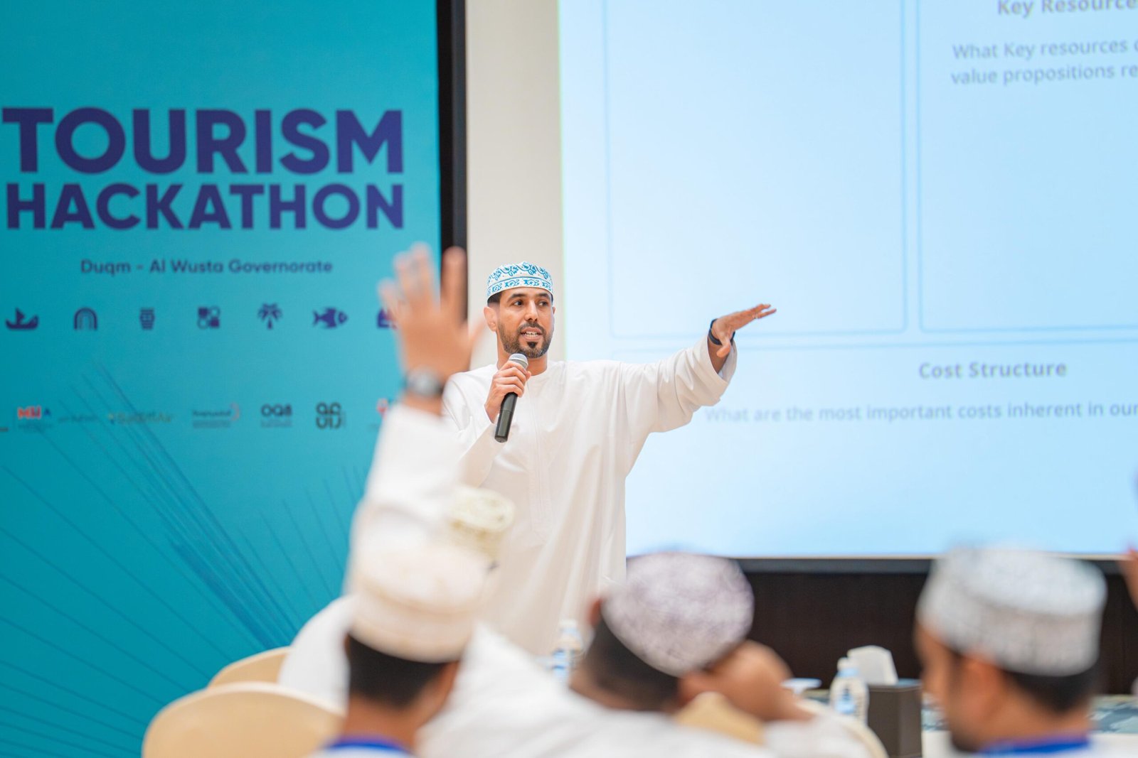 و أُقيم الهاكثون بتنظيم مشترك مع شركة دربك وأكاديمية مسقط للضيافة (MHA)، وبدعم من محافظة الوسطى، مجموعة عمران، مصفاة الدقم OQ8، المنطقة الاقتصادية الخاصة بالدقم (SEZAD)، وطيران السلام، تأكيدًا على أهمية الشراكة بين مختلف الجهات لدعم التنمية المستدامة والابتكار في القطاع السياحي.
