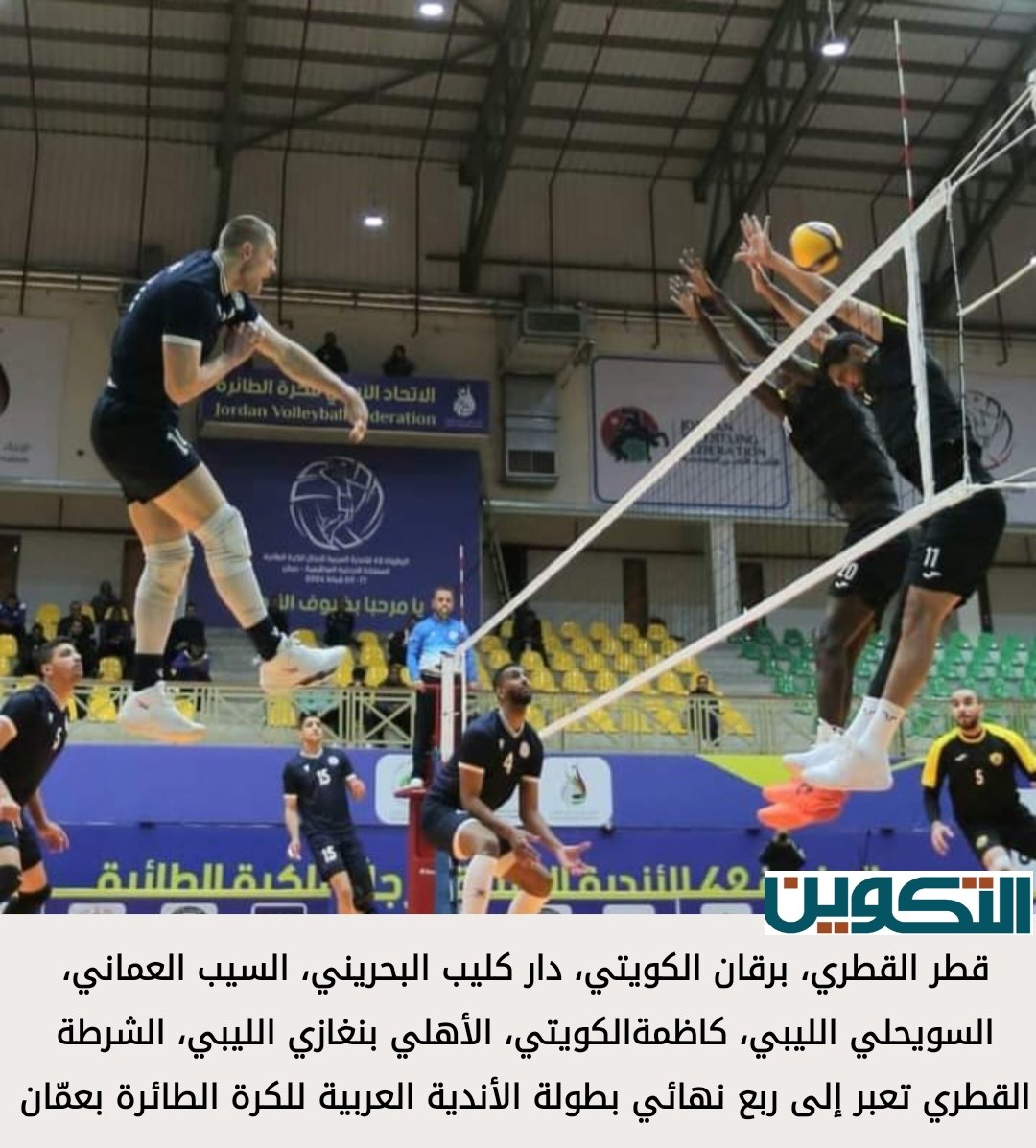 اختتمت في عمّان مساء السبت ٢٤ فبراير ٢٠٢٤م مباريات الأدوار التمهيدية للبطولة الثانية والأربعين للأندية العربية للرجال للكرة الطائرة والتي تستضيفها المملكة الأردنية الهاشمية خلال الفترة من ٢٠-٢٨ فبراير ٢٠٢٤م ، وقد تمكنت أندية قطر القطري وبرقان الكويتي ودار كليب البحريني والسيب العماني والسويحلي الليبي وكاظمة الكويتي والأهلي بنغازي الليبي والشرطة القطري من الصعود إلى مباريات دور الثمانية والتي سوف تقام يوم الاثنين ٢٦ فبراير ٢٠٢٤م حيث يلتقي في المباراة الأولى الساعة الحادية عشر صباحاً نادي قطر القطري الذي حل في الترتيب الأول في المجموعة الأولى ليقابل برقان الكويتي الذي حل رابعاً في المجموعة الثانية ، وعند الساعة الواحدة والنصف ظهراً يلتقي نادي دار كليب البحريني الحاصل على ترتيب المركز الثاني في المجموعة الثانية ونادي السيب العماني الحاصل على ترتيب المركز الثالث في المجموعة الأولى، وعند الساعة الرابعة مساء يلتقي نادي السويحلي الليبي الحاصل على ترتيب المركز الأول في المجموعة الثانية ونادي كاظمة الكويتي الحاصل على ترتيب المركز الرابع في المجموعة الأولى، ويختتم نادي الأهلي بنغازي الليبي الحاصل على ترتيب المركز الثاني في المجموعة الأولى أمام نادي الشرطة القطري الحاصل على ترتيب المركز الثالث في المجموعة الثانية ، وتقام جميع تلك المباريات في صالة الأميرة سمية بتوقيت العاصمة الأردنية عمّان.