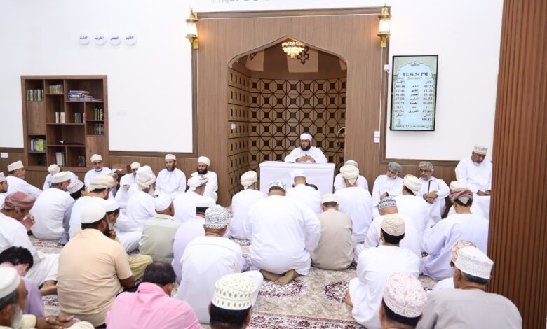 بعدها ألقى الشيخ القاضي عثمان بن ناصر العوفي محاضرة دينية بهذه المناسبة بدأها بالحمد والثناء لله سبحانه وتعالى ثم تحدث قائلا: نحتفي اليوم بافتتاح هذا المكان العظيم هذا المسجد بيت الله الذي ترفع فيه كلمته ويجتمع فيه الناس للعبادة والطاعة فهنيئا لمن أقام هذا الصرح الشامخ وهنيئا لمن أسس هذا الوقف الذي تجدد بسببه بناء هذا المسجد فكان أجرا متواصلا لمن أوقفه وكان أجرا دائما لمن أحسن لنفسه مع الله سبحانه وتعالى.