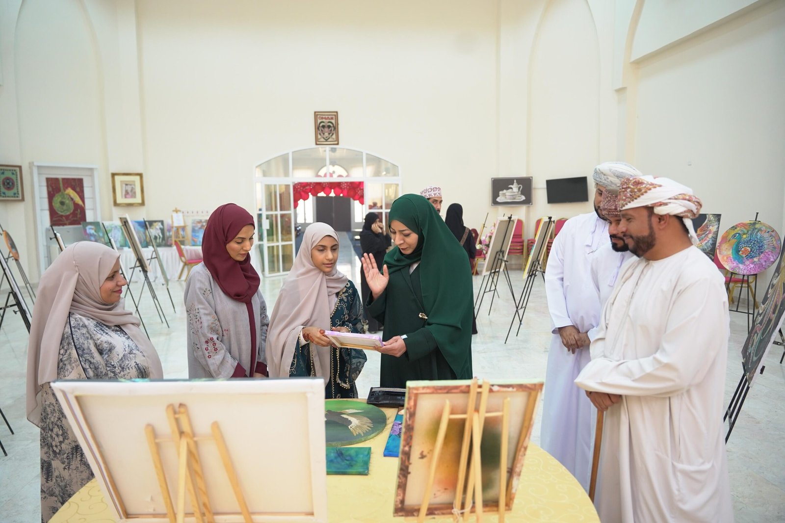 وضم المعرض 53 عملاً فنياً جسّدت ملامح الهوية العُمانية عبر إبراز دور المرأة في خدمة الوطن، إلى جانب تقديم رؤية فنية للموروثات التقليدية من خلال أعمال يدوية ولوحات كانفس، ولوحات سريالية، إضافة إلى أعمال في الخط العربي.