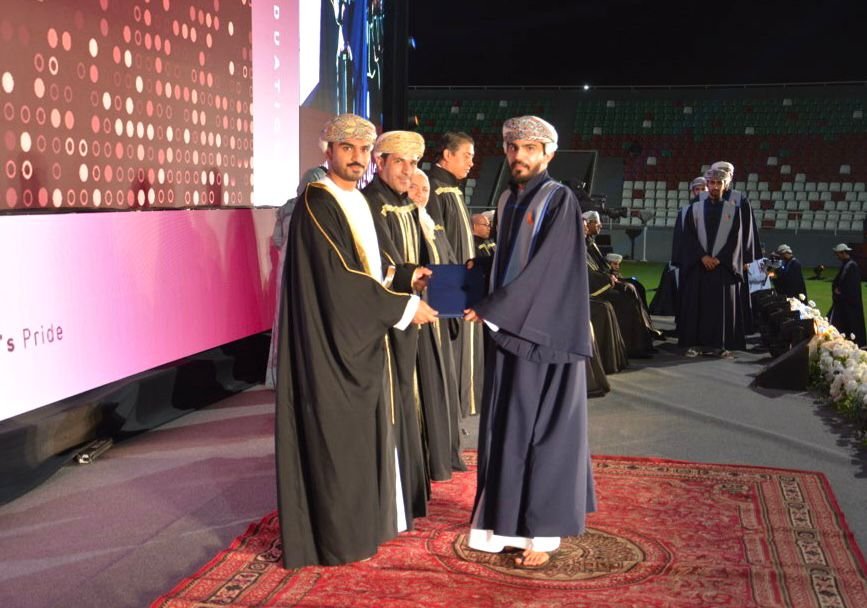 و اضاف الدكتور حافظ الرحبي : أنتم اليومَ حملةُ الأملِ وصنّاعُ الغد، كُفاةٌ بأن تسهموا في رقيِّ المجتمعِ وتقدّمِه، بما تحلّيتم به من علمٍ وفضيلة، وقيمٍ راسخةٍ وأخلاقٍ سامية نبيلة. فقد سخرت لكم جامعة التقنية والعلوم التطبيقية كل إمكاناتها لصقل مهاراتكم وفق أحدث التجارب العلمية، لتخرجوا عنصرا فاعلا في نهضة عمان الغالية. فهي أمانةٌ بين أيديكم، أدّوها على أكملِ وجه، وكونوا للوطنِ خيرَ عونٍ وسند. واحمدوا اللهَ الذي هداكم سبيلَ العلم، ويسّر لكم أسبابَه، وأورثكم قائدًا حكيمًا يُجِلُّ العلمَ وأهلَه – مولانا حضرةَ صاحبِ الجلالةِ السلطان هيثم بن طارق المعظم حفظه اللهُ ورعاه -. فخذوها أمانةً وعهدًا، أن تنهضوا بالمجتمع، وتُفيدوه بما تعلمتم في رحابِ هذه الجامعة.