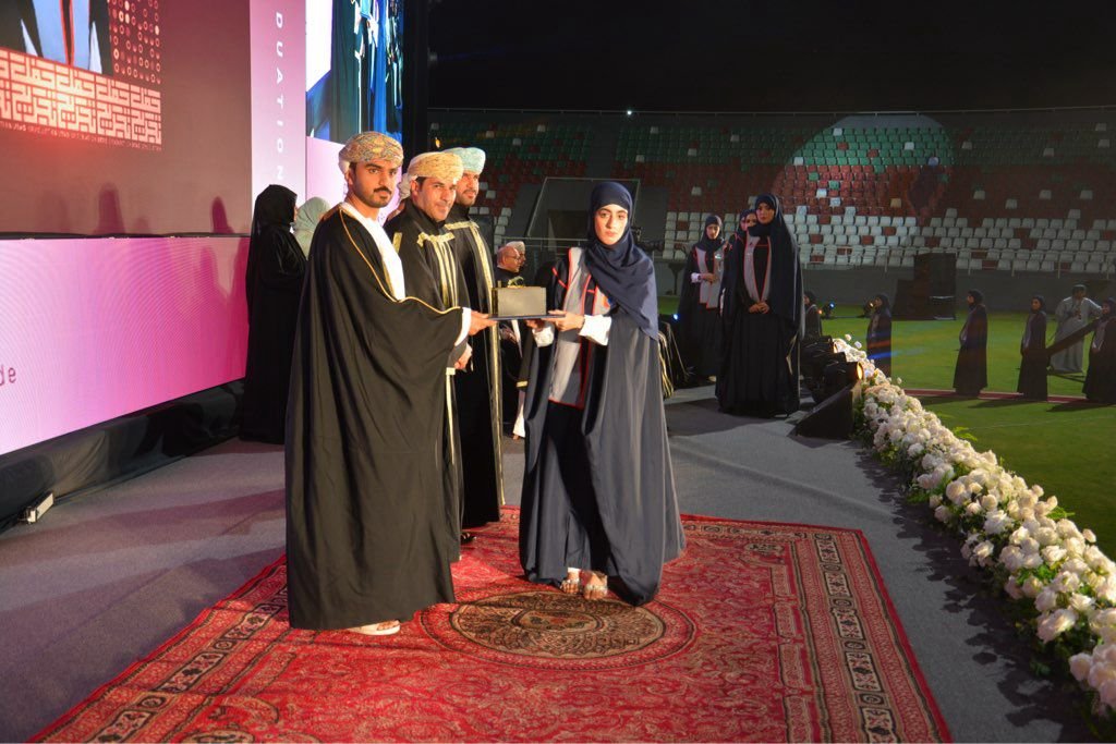 و تقول الطالبة طيف بنت راشد السديرية خريجة بكالريوس تخصص زراعة و تغذية انها لحظة شعور بالفخر و الاعتزاز و نحن نعتلي منصة التتويج و التكريم و هذا في المقام الاول بفضل الله تعالى ثم بالجد و الاجتهاد و المثابرة و الدعم اللامحدود من قبل جامعتي و اسرتي في نفس الوقت فكانوا لي سندا و دافعا نحو النجاح و هذه اللحظة هي الخطوة الاولى التي أضع فيها علمي ومعرفتي في خدمة وطني سلطنة عمان .