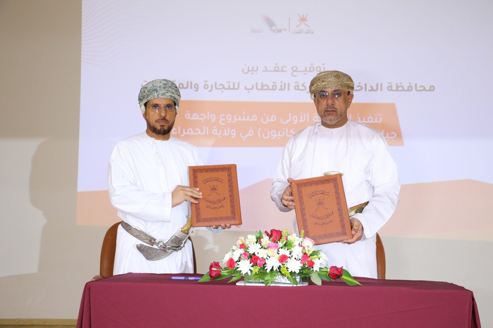 وشملت العقود تنفيذ المرحلة الأولى من مشروع واجهة جبل شمس السياحية بولاية الحمراء بتكلفة بلغت 2.9 مليون ريال عُماني، إلى جانب إنشاء واحة الجبل الشرقي بولاية الحمراء.