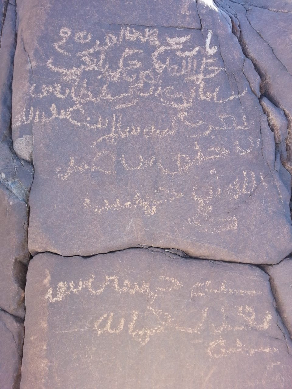 طالت بي سنين العمر أحمل هم معرفة تلك الكتابات وماهياتها وكيف وجدت ومن أي المواد من الحجر الربابي كما يسمى محليا أو من مشتقات الحديد . أذهلني جمال الألواح غريبة الإتقان في الصنع مقارنة بوضع المنطقة النائية وسط الأودية وشوامخ الجبال .