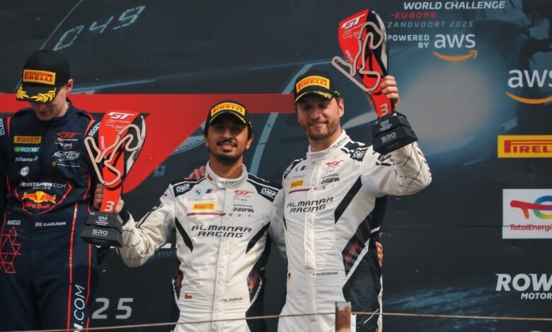 صعد المتسابق الدولي الفيصل بن خالد الزبير مجددًا على منصات تتويج السباقات العالمية بعد تحقيق المركز الثالث في الجولة الثانية من سباقات السرعة (السبرينت) ضمن بطولة تحدي جي تي العالمية 2025 وعلى حلبة زاندفورت الهولندية وهي ثالث محطاته للموسم الحالي حيث حل الفيصل في المركز الثالث في السباق الأول وفي نفس المركز في السباق الثاني في فئة الكاس الذهبية مع زميله في سائق المنار للسباقات ينز كلينغمان على متن سيارة بي أم دبليو “أم 4 جي تي 3 إيفو” وبالتعاون الفني مع فريق (دبليو أر تي) ليحصد الفريق مزيدًا من النقاط والتي تسهم في المنافسة على الترتيب العام مع نهاية البطولة وشهدت هذه الجولة مشاركة اكثر من 40 سيارة من مختلف المصانع حملت معها الكثير من الإثارة والتحدي.