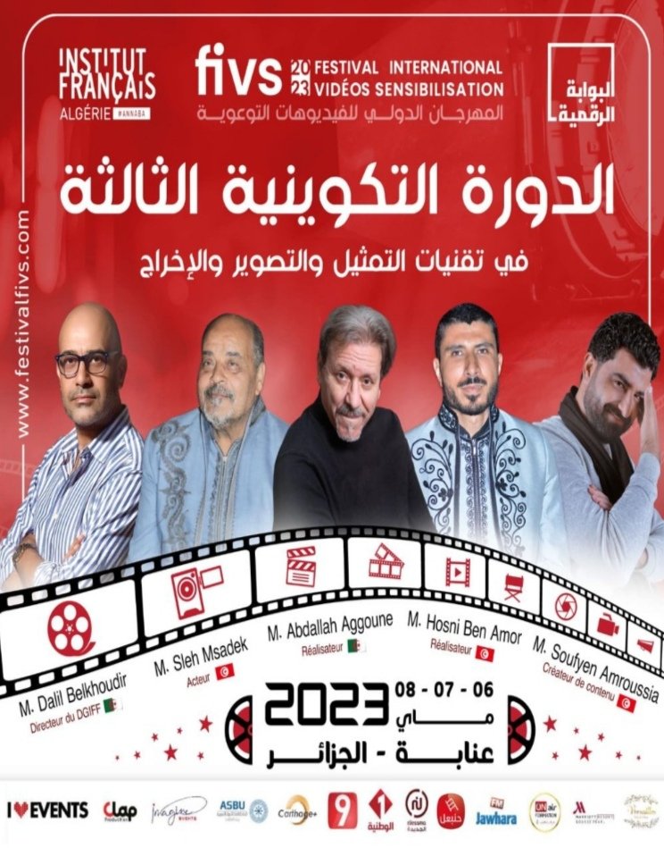 ينظم المهرجان الدولي للفيديوهات التوعوية ومقره الجمهورية التونسية، الدورة التكوينية الثالثة في تقنيات التمثيل والتصوير والإخراج بمدينة عنابة بالجمهورية الجزائرية وذلك خلال الفترة من ٦ إلى ٨ مايو ٢٠٢٣م.