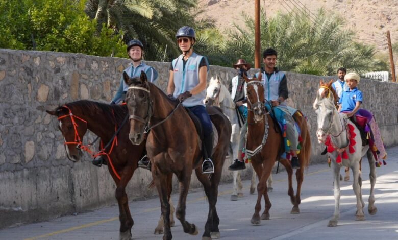 واستُهلت الفعالية بتجمع الفرسان في ساحة حصن العوابي، قبل الانطلاق باتجاه قرية العلياء (مزارع جَلَب) بولاية العوابي، في خطوة تُسجَّل للمرة الأولى بزيارة الخيول لهذه المنطقة الزراعية، حيث خاض المشاركون جولات بين واحات النخيل والمواقع الطبيعية، مستمتعين بما تزخر به البيئة الريفية من مقومات سياحية ومناظر خلابة تعكس أصالة المكان وثراءه الطبيعي.