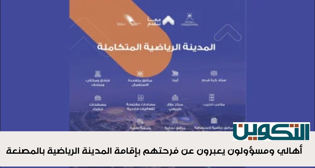 ثمن أهالي ومسؤولون بولاية المصنعة التوجيهات السامية لحضرة صاحب الجلالة السلطان هيثم بن طارق المعظم ـ حفظه الله ورعاه ـ بإقامة المدينة الرياضية المتكاملة بالمصنعة، والتي أعلن عنها صاحب السمو السيد ذي يزن بن هيثم آل سعيد وزير الثقافة والرياضة والشباب بإنشاء المدينة الرياضية المتكاملة بولاية المصنعة تشمل أحد عشر مبنى متكاملا بأرقي الموصفات العالمية التي تساهم في استضافة البطولات الدولية والعالمية .