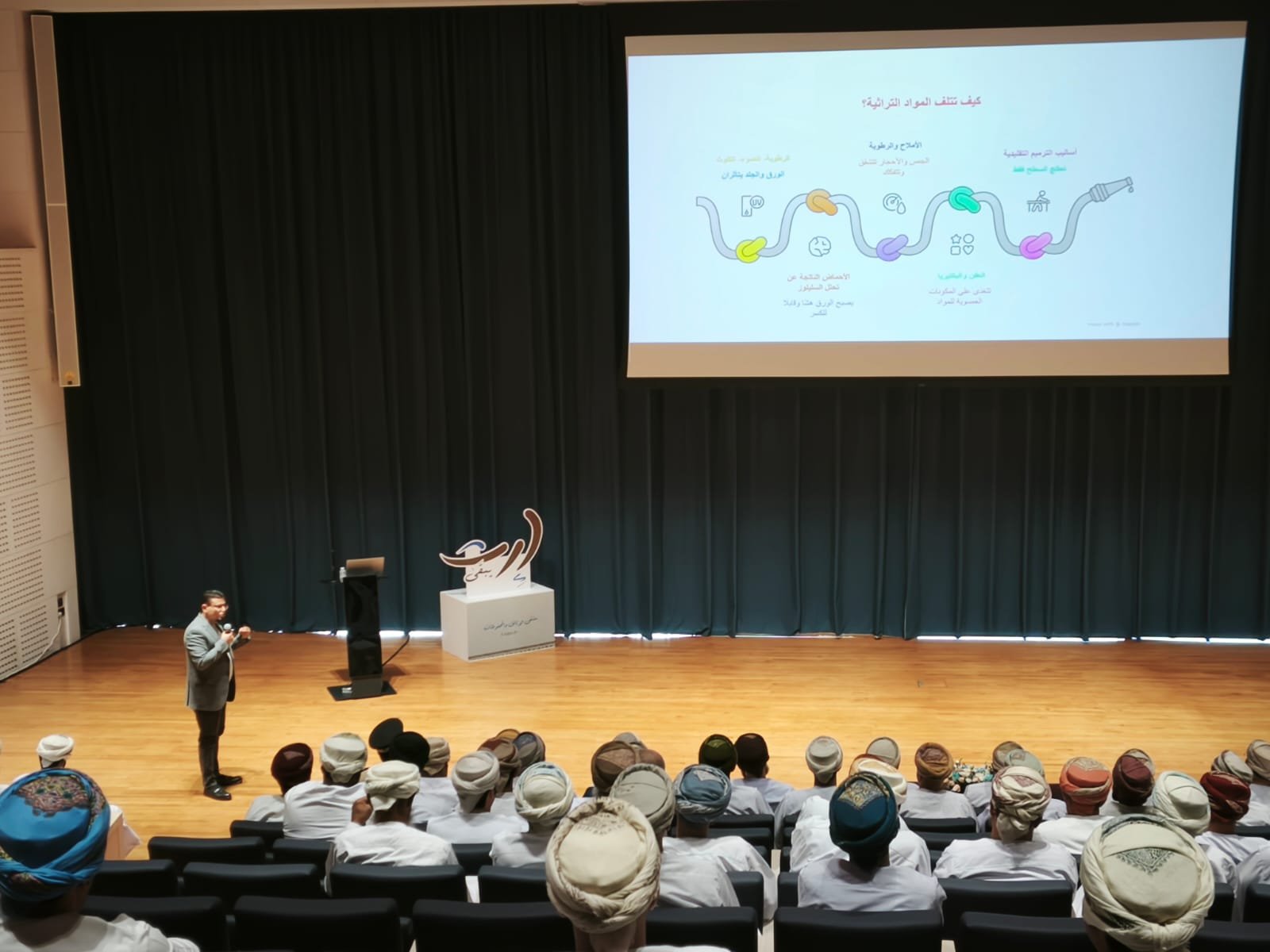 وتضمن الملتقى الذي نظمته تعليمية الداخلية برعاية سعادة الشيخ هلال بن سعيد الحجري محافظ الداخلية خمس أوراق علمية حيث قدم الدكتور حسين عبد العظيم يونس الباحث في مركز أبحاث تقنية النانو بجامعة السلطان قابوس ورقته بعنوان “تقنية النانو من رقائق المادة إلى ديمومة الوثيقة “وقدم الورقة الثانية الدكتور منذر بن حمد المنذري من جامعة التقنية والعلوم التطبيقية وجاءت بعنوان “التقنية النووية درع خفي لحماية ذاكرة الأمم “مبينا دور العلوم النووية في حماية الوثائق من العوامل البيئية.