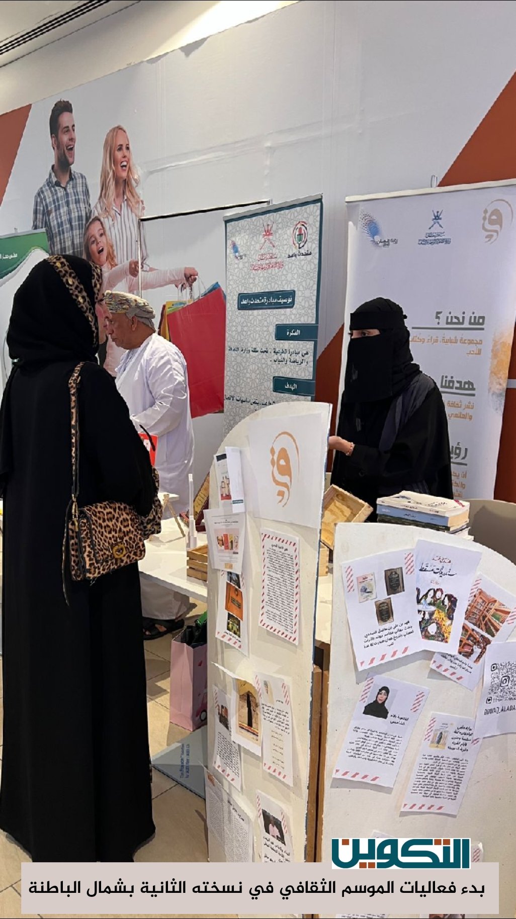 تحت رعاية سعادة الشيخ محمد بن عبد الله البوسعيدي والي صحار، افتتحت المديرية العامة للثقافة والرياضة والشباب بمحافظة شمال الباطنة موسمها الثقافي بنسخته الثانية للعام 2023 م، بالواحة مول بصحار، متضمنا عددا من البرامج والفعاليات المصاحبة منها: ردهة الفنون التشكيلية، ردهة الثقافة وركن الروبوت وركن المبادرات الشبابية، وشهد اليوم الثاني جلسة حوارية مع المجالس الشعرية بمحافظة شمال الباطنة أدارها الشاعر عقيل اللواتي، بالإضافة الى فعاليات الأطفال التي قدمها محمد الشيزاوي والتي تضمنت المسابقات الثقافية وطريقة صناعة السفن العمانية بتقنية VR للعالم الافتراضي، واختتم اليوم الثاني برسم حي مع الفنان سعيد الرويضي ونخبة من الفنانين التشكيليين.