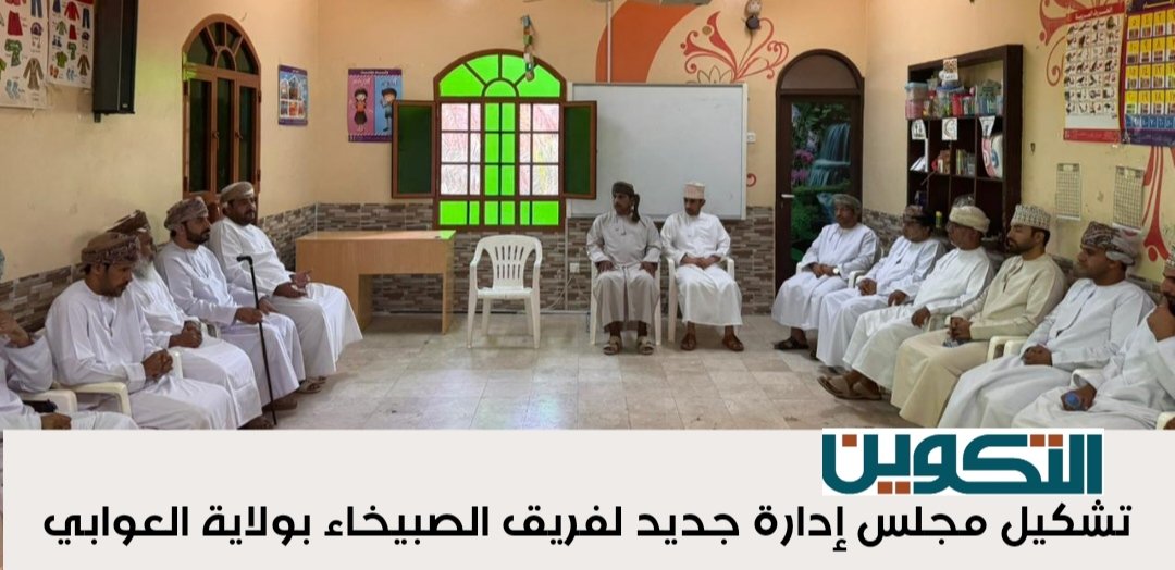 التقى سعادة طارق بن محمد الخروصي عضو مجلس الشورى ممثل ولاية العوابي فريق الصبيخاء التابع للمركز الرياضي , حيث تم خلال اللقاء مناقشة عدد من المواضيع المتعلقة بالفريق , وتشكيل مجلس إدارة جديد للفترة (2024م – 2026م) ، حيث جاء يوسف بن سالم السيابي رئيساً للفريق و سيف بن سالم الرواحي نائبا للرئيس وجاء وليد بن محمد الرواحي أميناً للسر وشبيب بن سالم الرواحي رئيساً اللجنة الرياضية وأحمد بن ناصر الرواحي أميناً للصندوق وسليمان بن حمد السيابي رئيساً للجنة الثقافية والإجتماعية وهلال بن سعيد الرواحي رئيساً للجنة الإعلامية.