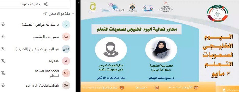 كما نظمت المديرية العامة للتربية والتعليم ممثلة في دائرة المدارس الخاصة والتعلم المستمر ملتقى صعوبات التعلم وذلك عبر الاتصال المرئي تم خلاله تقديم عدة أوراق عمل قدمها عدد من الخبراء والتربويين من سلطنة عمان ودول الخليج.