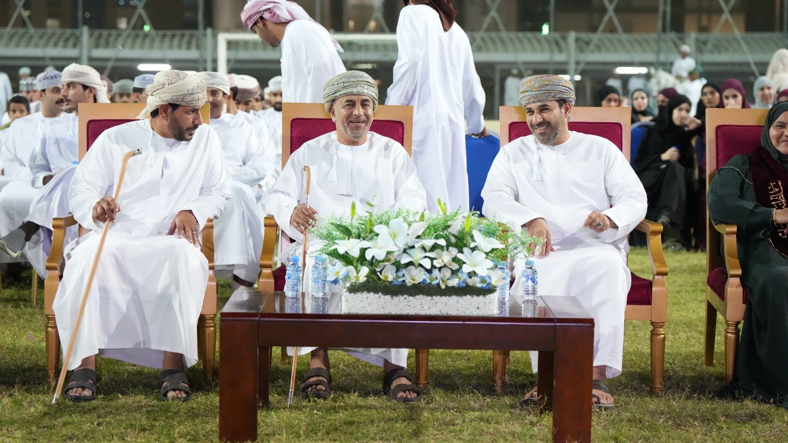 افتُتِح معرض التاجر العُماني الذي ضم أركانًا متنوعة لطلبة وروّاد أعمال محليين، قدموا من خلالها منتجات عُمانية تجسد الهوية الوطنية وتدعم ثقافة ريادة الأعمال بين الشباب. وفي الفترة المسائية، انطلقت مسيرة الوفاء والعرفان من أمام البوابة الرئيسية للجامعة وصولًا إلى الملعب المعشّب الطبيعي، ، وجاءت المسيرة في لوحة وطنية مشرقة تعبيرًا عن الاعتزاز بالإنجازات الوطنية وتعميقًا لقيم الانتماء. كما اشتملت الفترة المسائية على مسابقات رياضية لأطفال الموظفين العُمانيين، في مبادرة تهدف إلى تعزيز روح المشاركة المجتمعية وإضفاء أجواء من البهجة على الاحتفال.