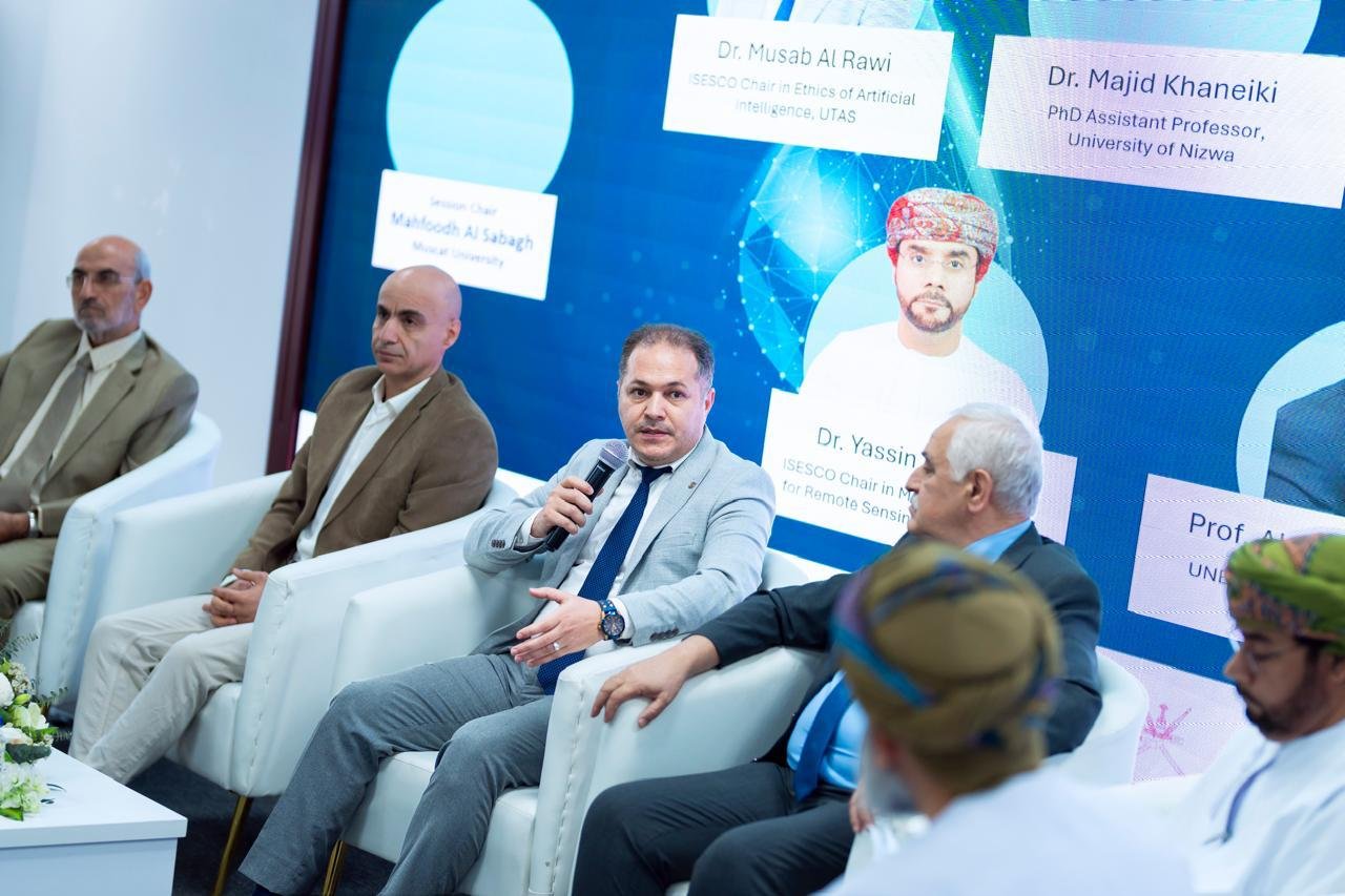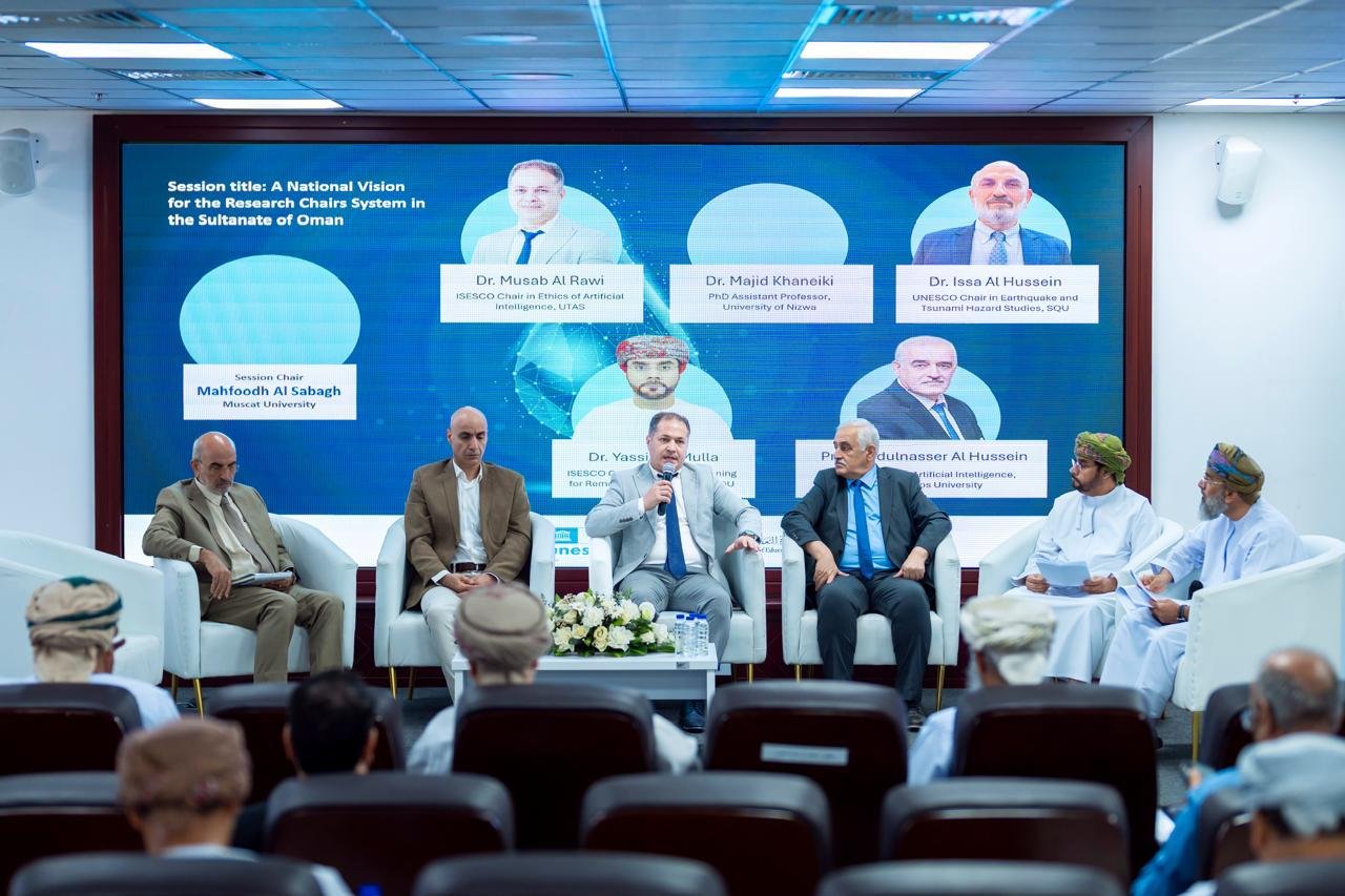 وفي سياق متصل، شارك كرسي الأيسيسكو لأخلاقيات الذكاء الاصطناعي بجامعة التقنية والعلوم التطبيقية يوم الاثنين في الجلسة الحوارية ضمن أعمال الندوة الوطنية البحثية بعنوان: “هندسة مستقبل الكراسي البحثية في سلطنة عمان” التي أقيمت بجامعة مسقط، برعاية سعادة الدكتورة جوخة بنت عبدالله الشكيلية الرئيس التنفيذي للهيئة العمانية لضمان جودة التعليم.