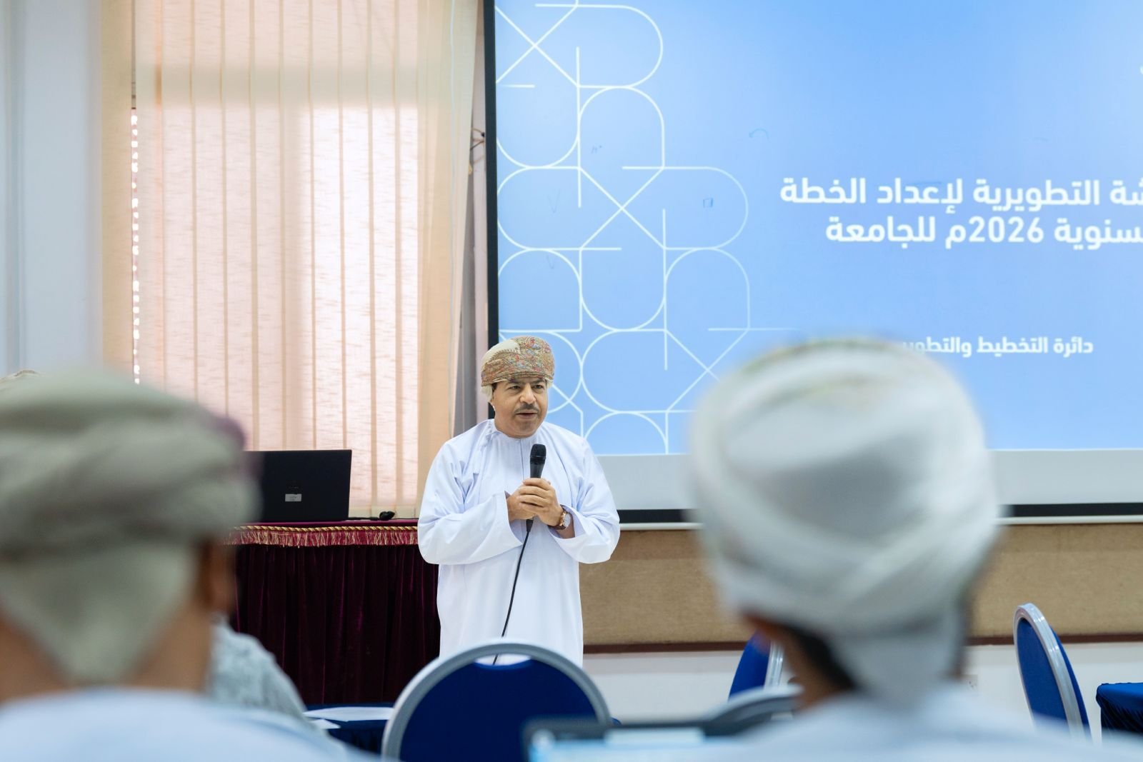 في إطار التوجهات الوطنية لتعزيز جودة التخطيط المؤسسي وتحقيق مستهدفات رؤية عمان 2040، نظمت جامعة التقنية والعلوم التطبيقية حلقة عمل تطويرية موسعة لإعداد الخطة السنوية للجامعة لعام 2026، وذلك استرشادًا بالدليل الإسترشادي لمنظومة التخطيط والمتابعة والتقييم الصادر عن الأمانة العامة لمجلس الوزراء، وبالاستناد إلى بطاقة مستهدفات الجامعة المحدثة.