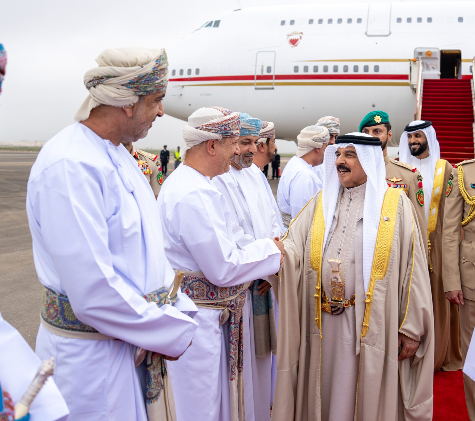 جلالةُ السُّلطان المعظّم في مقدّمة مُستقبلي أخيه جلالة ملك البحرين بمحافظة ظفار