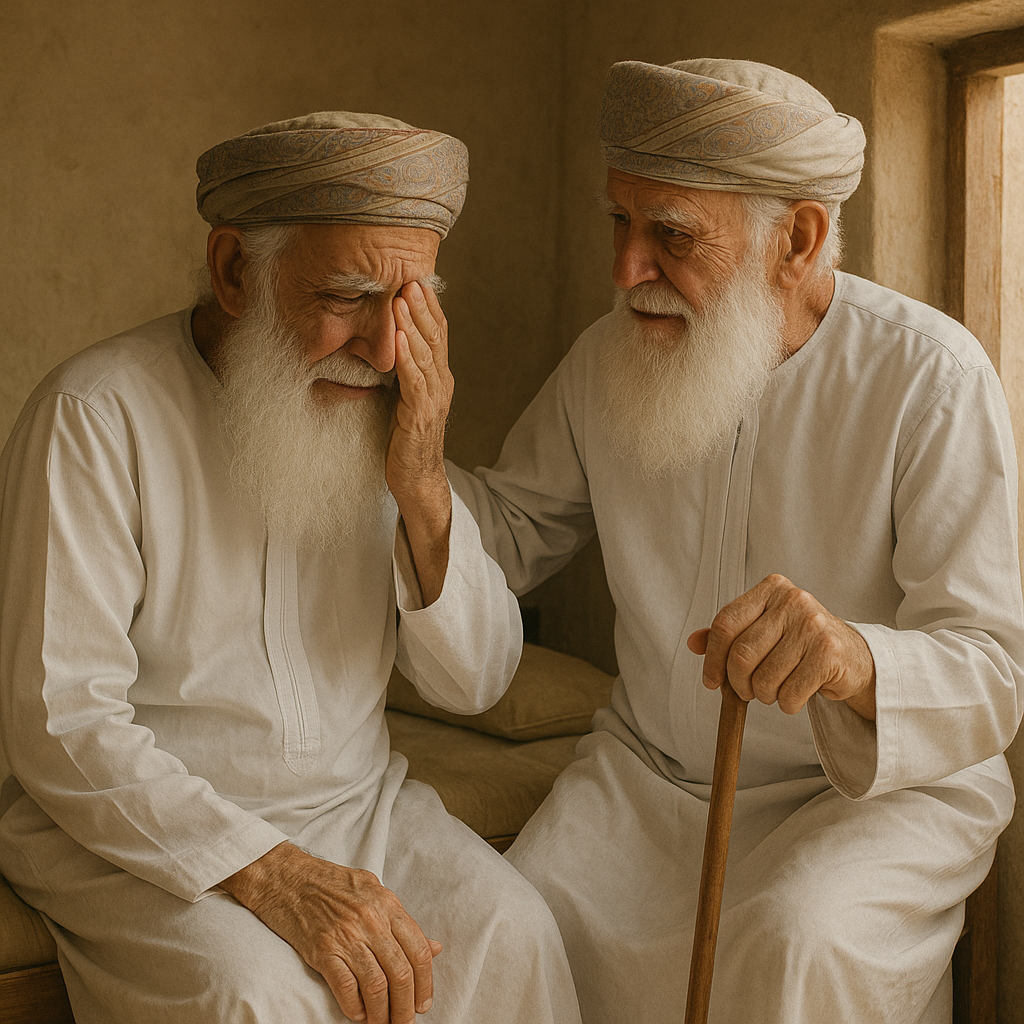 – كفى يا خليفة… لا تجرّ على نفسك هذا الهمّ الثقيل. دع الحزن يرحل، لا تُرهق نفسك، ولا تُثقل على هذه الزوجة الطيبة، فهي مسنّة مثلك، تُعاني مثلك.