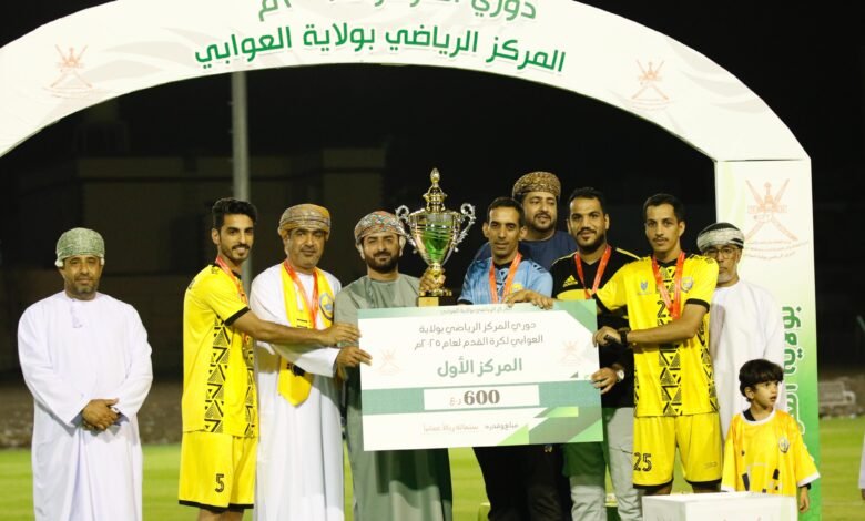 اختتمت منافسات دوري المركز الرياضي بولاية العوابي لكرة القدم لعام ٢٠٢٥م، وذلك تحت رعاية سعادة طارق بن محمد الخروصي، عضو مجلس الشورى ممثل ولاية العوابي، وسط حضور جماهيري مميز يعكس الاهتمام الكبير بالرياضة في الولاية.