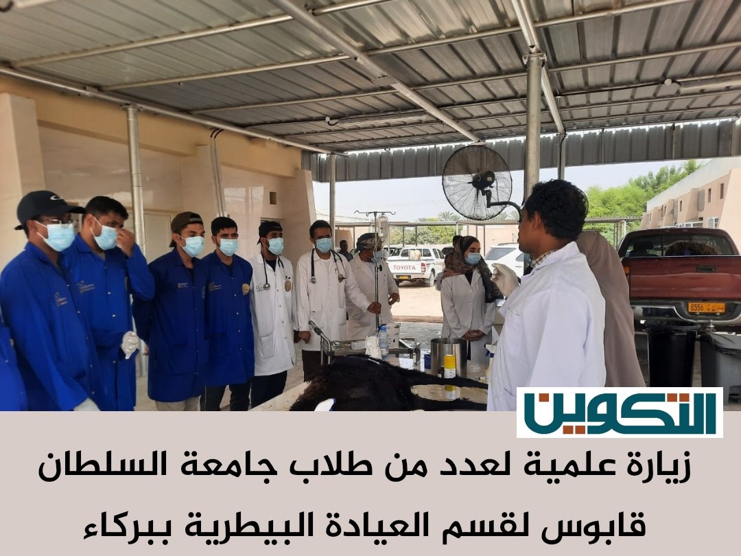 نفذ قسم علوم الحيوان والبيطرة بجامعة السلطان قابوس زيارة علمية لقسم العيادة البيطرية بدائرة التنمية الزراعية والسمكية وموارد المياه بولاية بركاء.