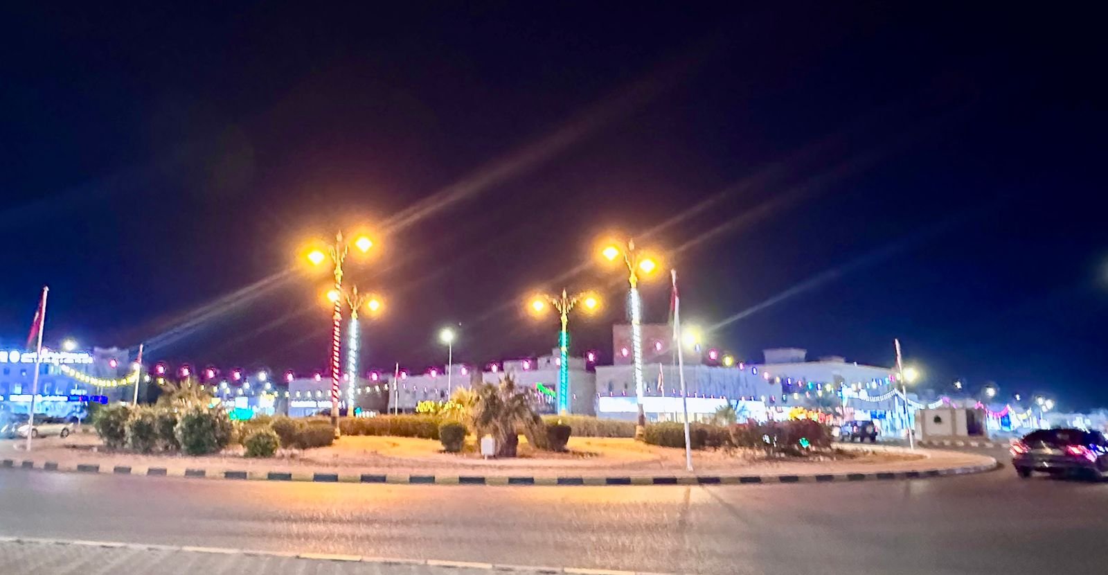وتبرز الصور التي رُصدت من قلب سناو جماليات المكان وهي تتلألأ بضوء المصابيح الذهبية التي تتصدّر أعمدة الإنارة المزخرفة، إلى جانب سلاسل من المصابيح الصغيرة التي عُلّقت فوق الممرات والطرقات، تضفي على المكان طابعًا احتفاليًا دافئًا. كما ظهرت مجسمات ضوئية على شكل باقات ملوّنة تتوسط بعض الدوّارات، في عمل فني أضفى لمسة بصرية مميزة على المشهد العام.وعبّر عدد من الأهالي عن فرحتهم الغامرة، مؤكدين أن تزيين الولاية أصبح تقليدًا ينتظره الجميع سنويًا، لما يحمله من رمزية وولاء ومحبة لهذا الوطن ولقائده المفدّى – حفظه الله ورعاه. وأضافوا أن هذه الإضاءات تمنح المكان روحًا خاصة وتُشعر الجميع بعمق الانتماء لهذا الوطن المعطاء.
