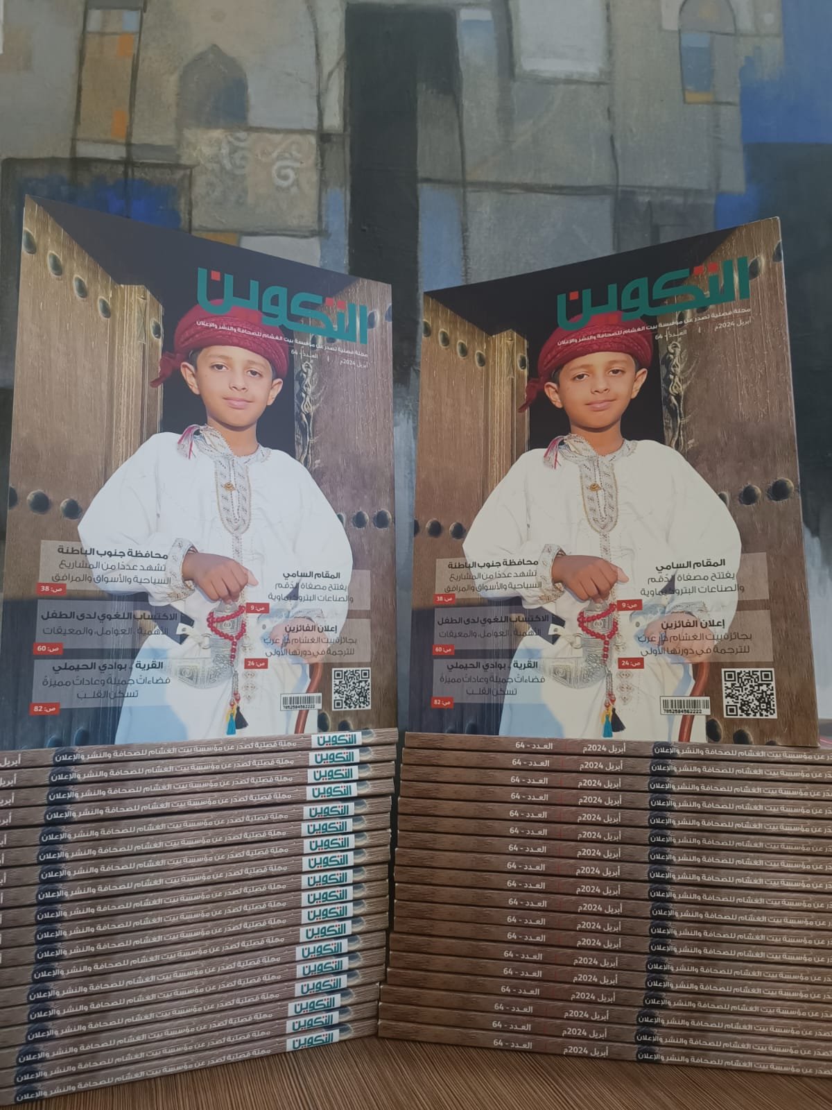 أصدرت مؤسسة بيت الغشام للصحافة والنشر والإعلان العدد الجديد رقم 64 من مجلة التكوين متضمنا مواضيع متنوعة، حيث وثق باب نبض التكوين افتتاح مشروع مصفاة الدقم والصناعات الكيماوية وتكريم مؤسسة بيت الغشام لعدد من الشخصيات الثقافية والتراثية والأطباء والممرضين بمستشفى الرستاق والداعمين للخدمات الصحية بولاية بركاء وإعلان الفائزين بجائزة بيت الغشام دار عرب للترجمة في دورتها الأولى.