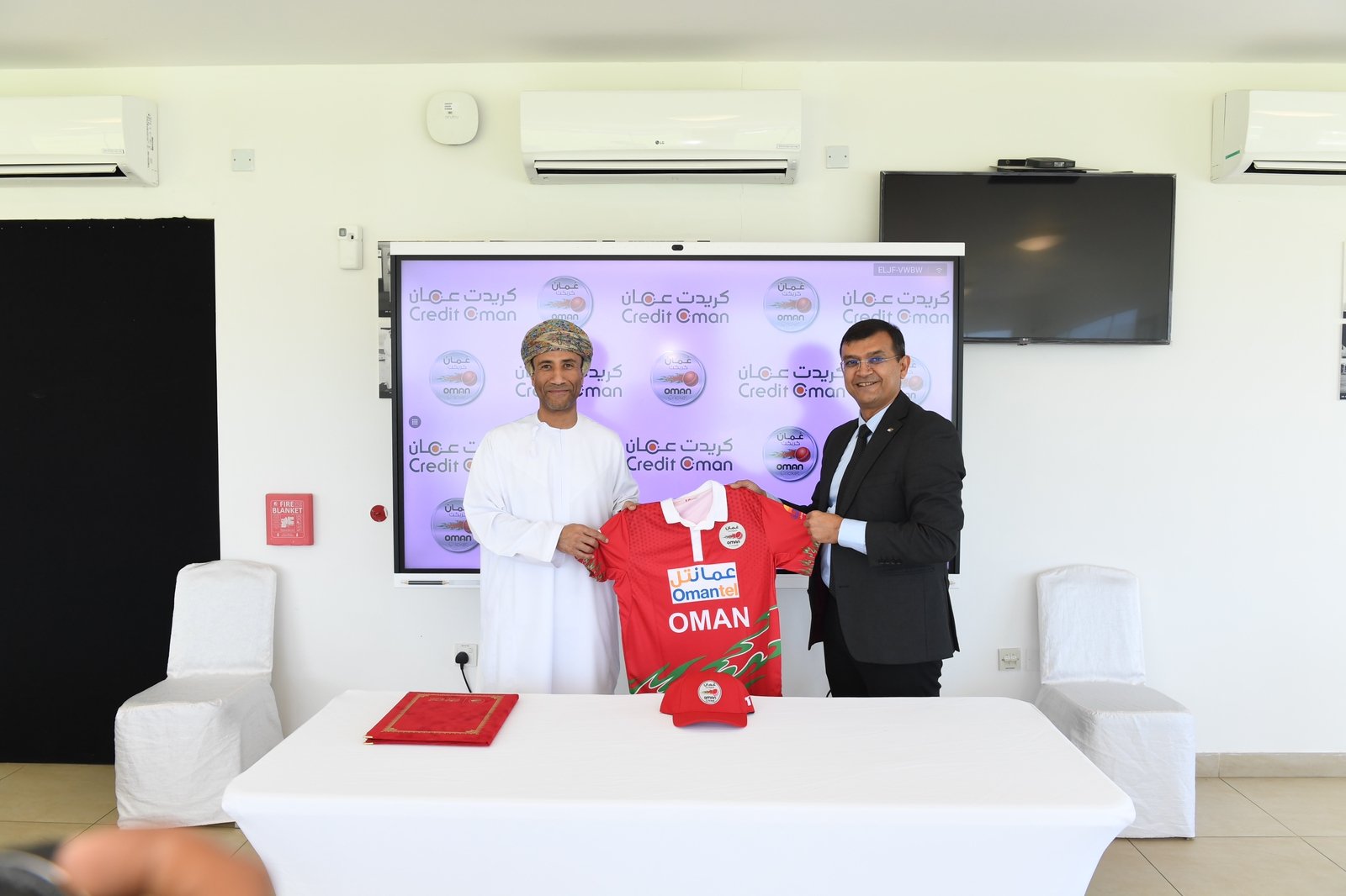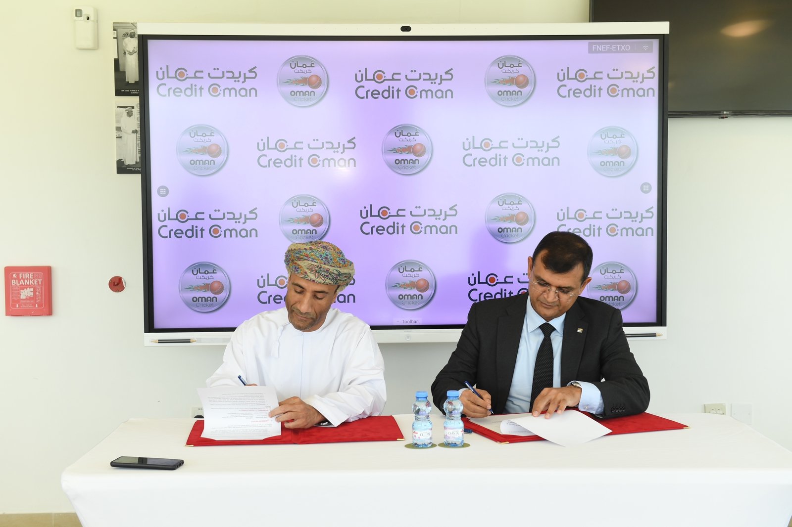 وقع الاتفاقية من جانب كريدت عُمان محمد بن هلال الجابري مدير المبيعات و من جانب أكاديمية عمان للكريكت الفاضل ألكيش جوشي أمين الصندوق بالأكاديمية.