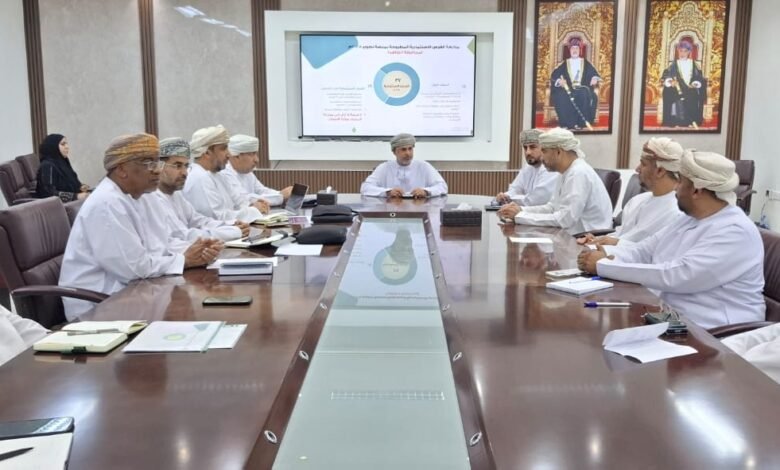 عقدت اللجنة الفرعية لتنظيم الانتفاع بالأراضي الزراعية في محافظة الظاهرة، اجتماعاً برئاسة الدكتور طلال بن زهران البوسعيدي، مدير عام الثروة الزراعية وموارد المياه بالمحافظة، لتحقيق مستهدفات رؤية عمان ٢٠٤٠ وتسريع طرح الفرص الاستثمارية لعام 2026.