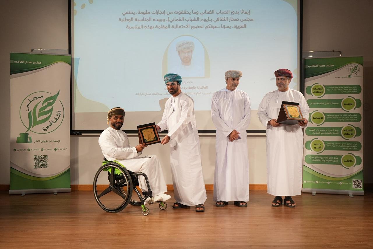 احتضنت جامعة صحار احتفالًا بـ يوم الشباب العُماني الذي نظمه مجلس صحار الثقافي برعاية خليفة بن محمد البلوشي، المدير العام المساعد بالمديرية العامة للثقافة والرياضة والشباب بمحافظة شمال الباطنة، وبحضور نخبة من الشباب العُمانيين، وعدد من الضيوف وأعضاء المجلس ومحبي الثقافة، حيث استهل الحفل بكلمة ألقاها رئيس مجلس صحار الثقافي صالح بن سعيد الحمداني، عبّر فيها عن فخره واعتزازه بهذه المناسبة الوطنية الغالية.
