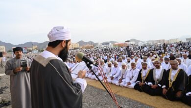 وقد أمّ المصلين وخطب فيهم سيف بن محمد اللمكي، حيث استهلّ خطبته بالحمد والثناء لله -عز وجل- الذي أكرم عباده بالإسلام، وأنعم عليهم بالأمن والأمان، مؤكدًا أن عيد الفطر يأتي تتويجًا لعبادات شهر رمضان المبارك، وداعيًا إلى المداومة على الطاعات وصون ما تحقق من مكاسب إيمانية خلال الشهر الفضيل.