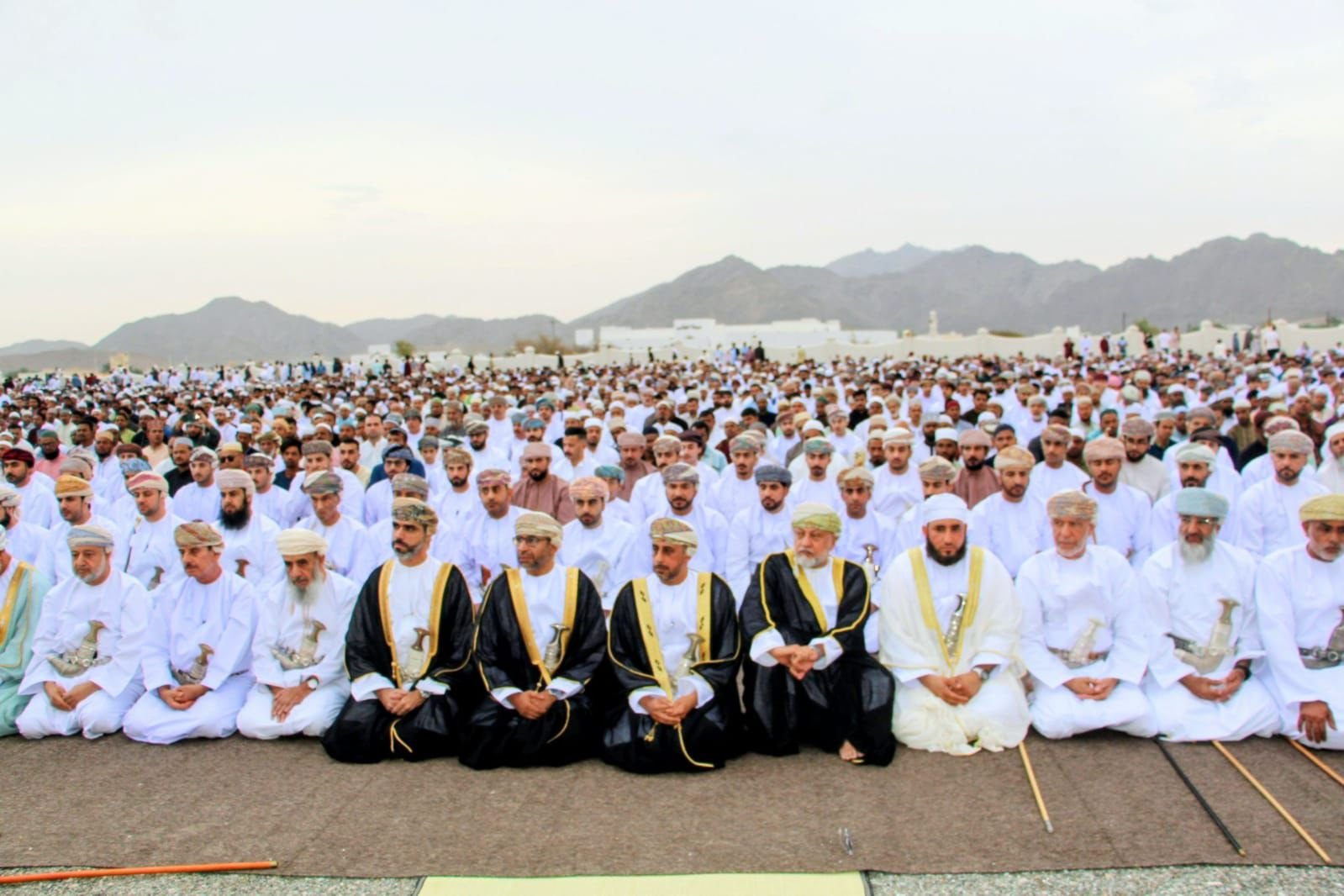 وعقب أداء الصلاة، استقبل سعادة المهندس المحافظ جموع المهنئين من المشايخ والرشداء والمسؤولين في المؤسسات الحكومية والأهلية والخاصة، إلى جانب المواطنين من مختلف قرى الولاية، حيث تبادل الجميع التهاني والتبريكات بهذه المناسبة المباركة، سائلين الله أن يعيدها على الأمة الإسلامية بالخير واليُمن والبركات.