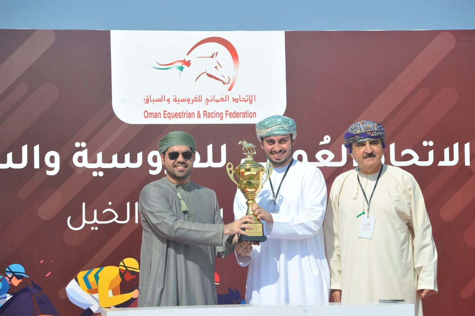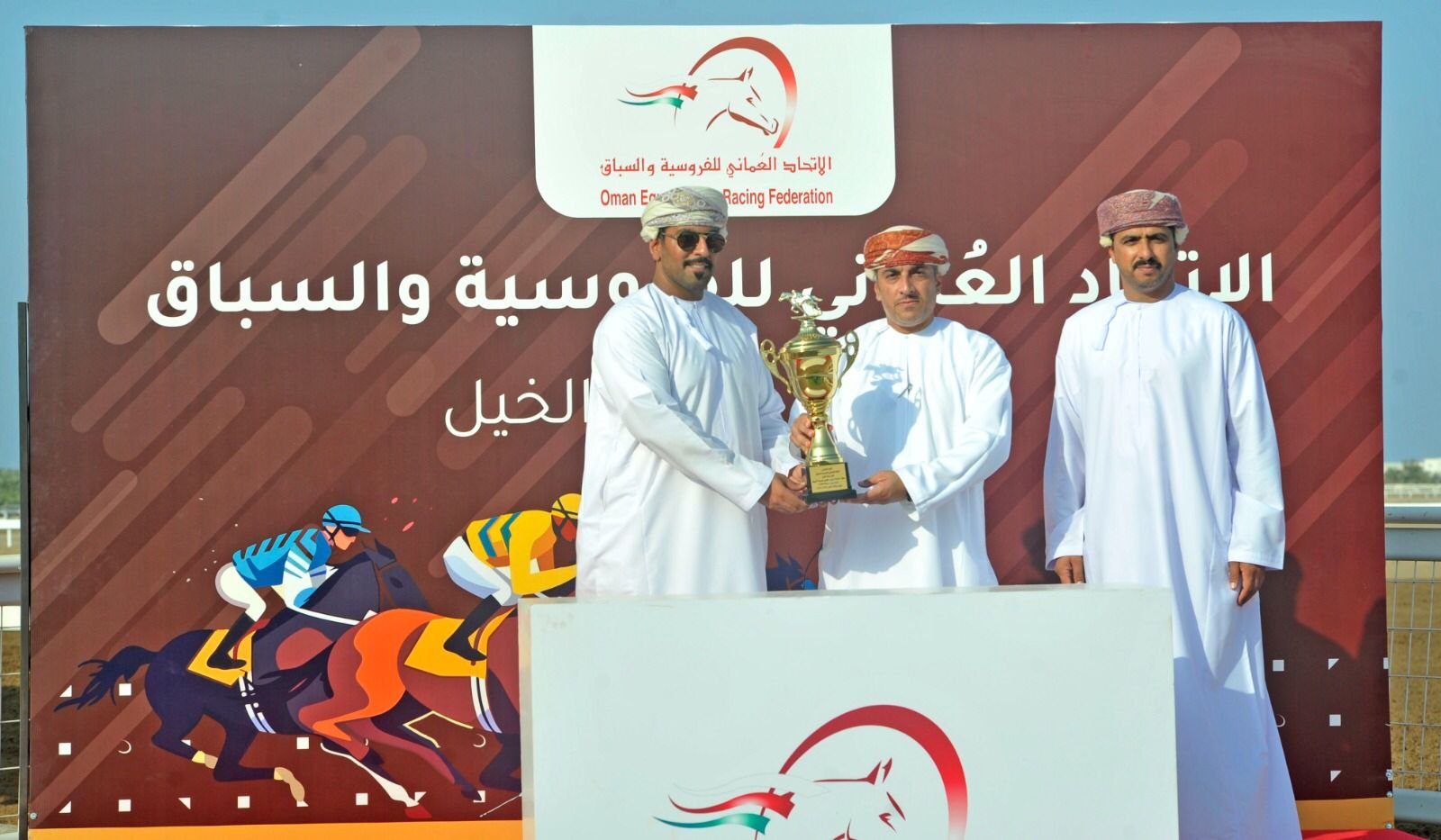 في نهاية الأشواط تم تكريم الفائزين بالمراكز الأولى في مختلف أشواط السباق الثمانية من قبل أعضاء مجلس إدارة الإتحاد العماني للفروسية والسباق.