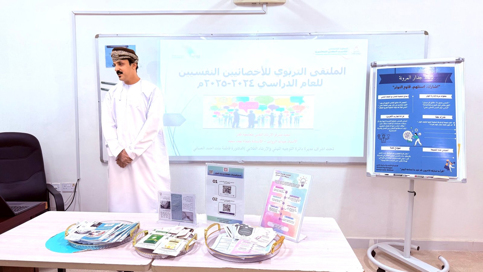 نظّمت المديرية العامة للتربية والتعليم بمحافظة ظفار، ممثلةً في دائرة التوجيه المهني والإرشاد الطلابي – قسم الإرشاد والتوعية – مجال الإرشاد النفسي، اليوم، فعاليات ملتقى التربوي للأخصائيين النفسيين للعام الدراسي 2024/ 2025م “نحو بيئة مدرسية نفسية آمنة”، وذلك بمركز التدريب بالدهاريز، تحت رعاية الدكتورة فاطمة بنت أحمد فرج الغساني، مديرة الدائرة، وبحضور الأستاذة منيرة السعدي، مشرفة أولى بقسم الإرشاد والتوعية بديوان عام وزارة التربية والتعليم.