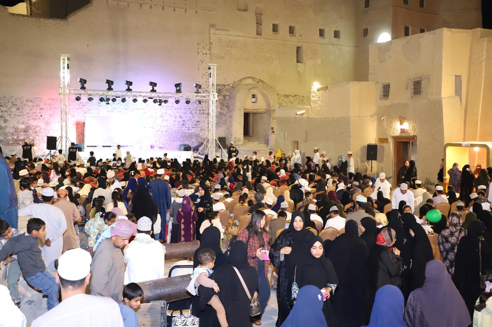 أما حصن جبرين فقد احتضن فعاليات جمعت بين الطابع التراثي والثقافي والبعد العلمي حيث قدم عروضًا للفنون الشعبية وركن الحناء والمأكولات الشعبية إلى جانب فعالية فلكية مخصصة لرصد الأجرام السماوية أتاحت للزوار فرصة فريدة لاكتشاف أسرار السماء كما تزيّن الحصن بلوحة فنية مكونة من مئتين وواحد وثمانين منطادًا مضيئًا شكلت مشهدًا بصريًا آسرًا إضافة إلى فعاليات الرسم على الوجوه فيما اختتمت الفعاليات بعروض العزف الحي التي منحت الحضور أجواء موسيقية مميزة