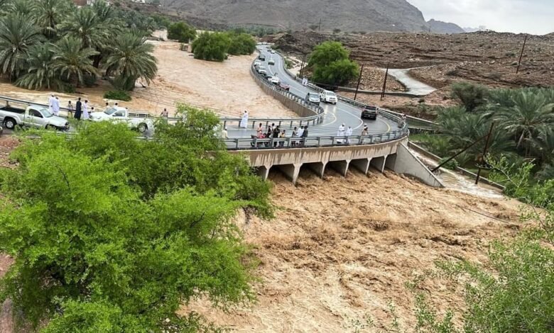 وأدى هطول الأمطار إلى جريان عدد من الشعاب والمسيلات وأودية سداق ومري وشخر وراب والقبيل، وادي بني هني، وادي سيع، وادي السحتن، وادي بني عوف، وادي الحيملي، ووادي الحاجر.
