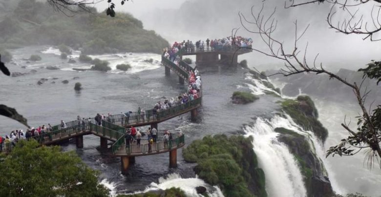 وتمثل مدينة “فوز دو إيجواسو” الصغيرة في البرازيل ومدينة “بويرتو إجوازو” في الأرجنتين نقطة الانطلاق لزيارة الشلالات البديعة في أمريكا الجنوبية، ونظرا لعدم وجود اتصال بين الجانبين فلا يمكن للسياح تجنب الطرق الطويلة، ويوفر الجانب البرازيلي إمكانية مشاهدة الشلالات بشكل أكثر دقة وقربا، في حين يمتلك الجانب الأرجنتيني الجزء الأكبر من الشلالات.