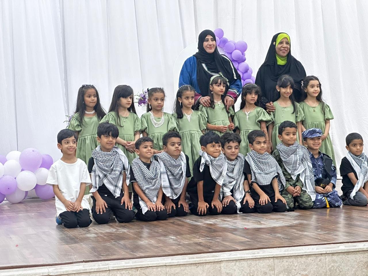 اشتمل الحفل على عدد من اللوحات المتنوعة امتزجت بين الفرحة والبهجة وقصص النجاح والكفاح ، كما جاءت اللوحة الثانية عن فلسطين ، و تخلل اللوحات عدد من حفظة القرآن الكريم وتتويجهم على منصة المسرح .