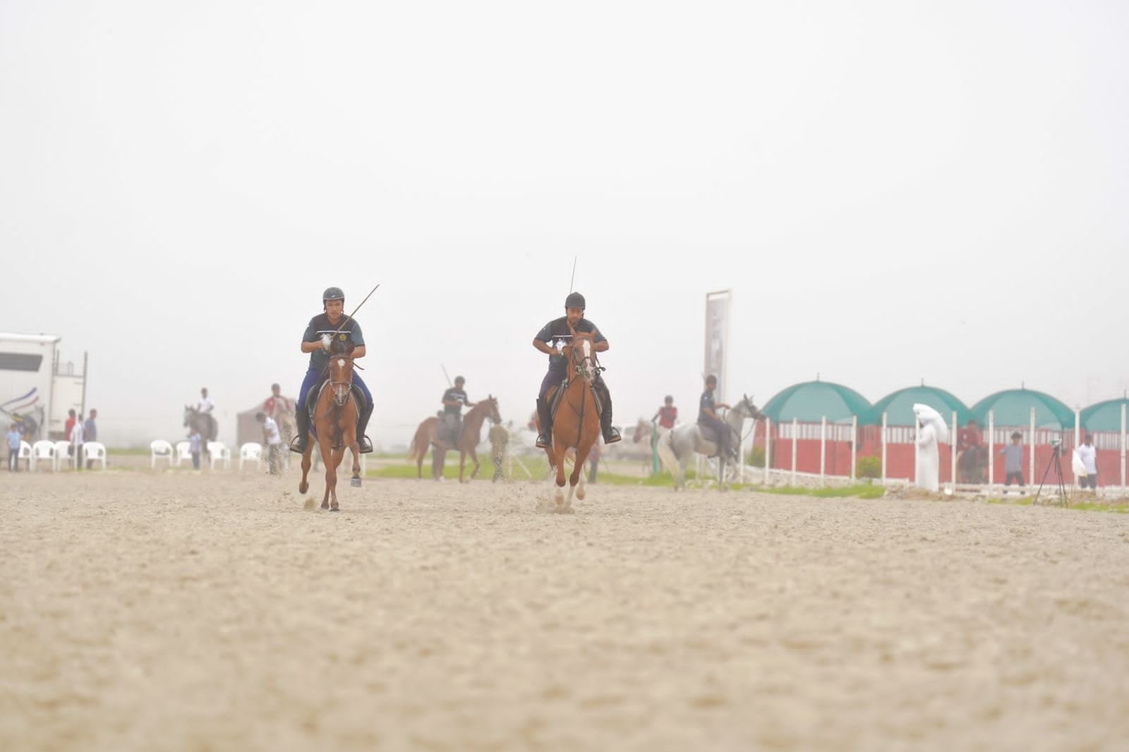 وشاركت في البطولة (٧) فرق ممثلة من مختلف وحدات الخيالة الحكومية والاسطبلات الخاصة، وجاءت منافسات اليوم الأول من خلال سبع جولات متمثلة في فردي سيف، وزوجي سيف، وفرق سيف لمختلف مقاسات الوتد.