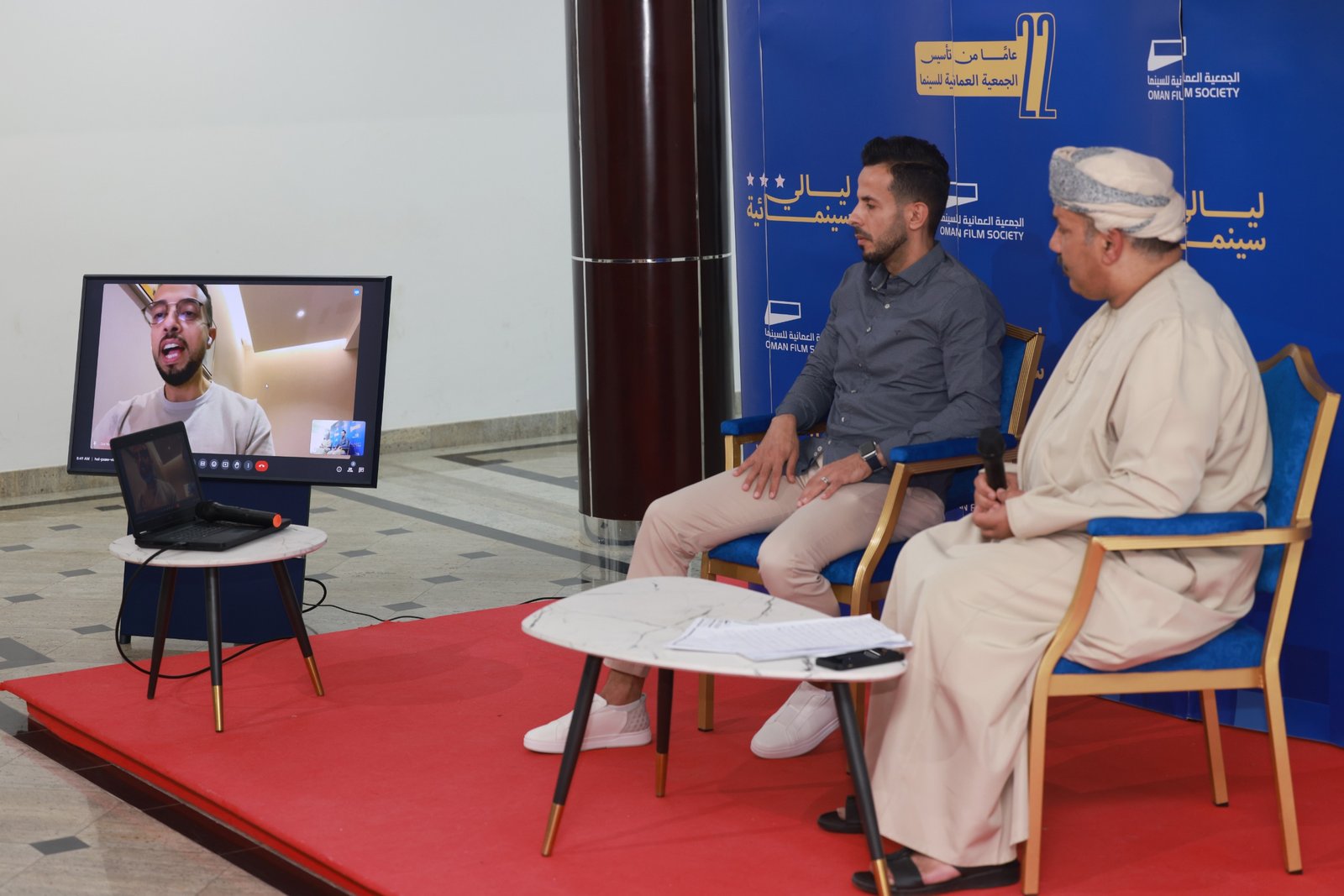 وقال أيضا: الشركة التي تضم الشباب اليمني المبدع لها تجارب في الدراما والمسلسلات الطويلة منها (سد الغريب) و (ماء الذهب)، ولقد تحدث الضيفان في الجلسة الحوارية عن مشوارهم الفني والدورات السينمائية التي صقلت مهارتهم وأسهمت في تكوينهم ليمكنهم تقديم أعمال مميزة.