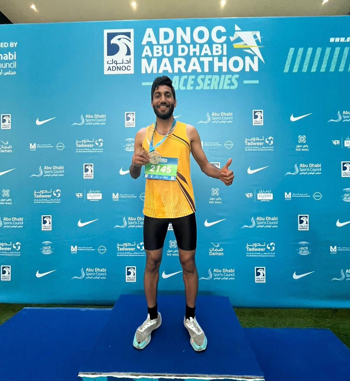 حقق العداء العماني مازن بن سالم الريامي من ولاية العوابي بمحافظة جنوب الباطنة رقما مميزا في سباق مارثون أدنوك بأبوظبي ” يأس مول ” .