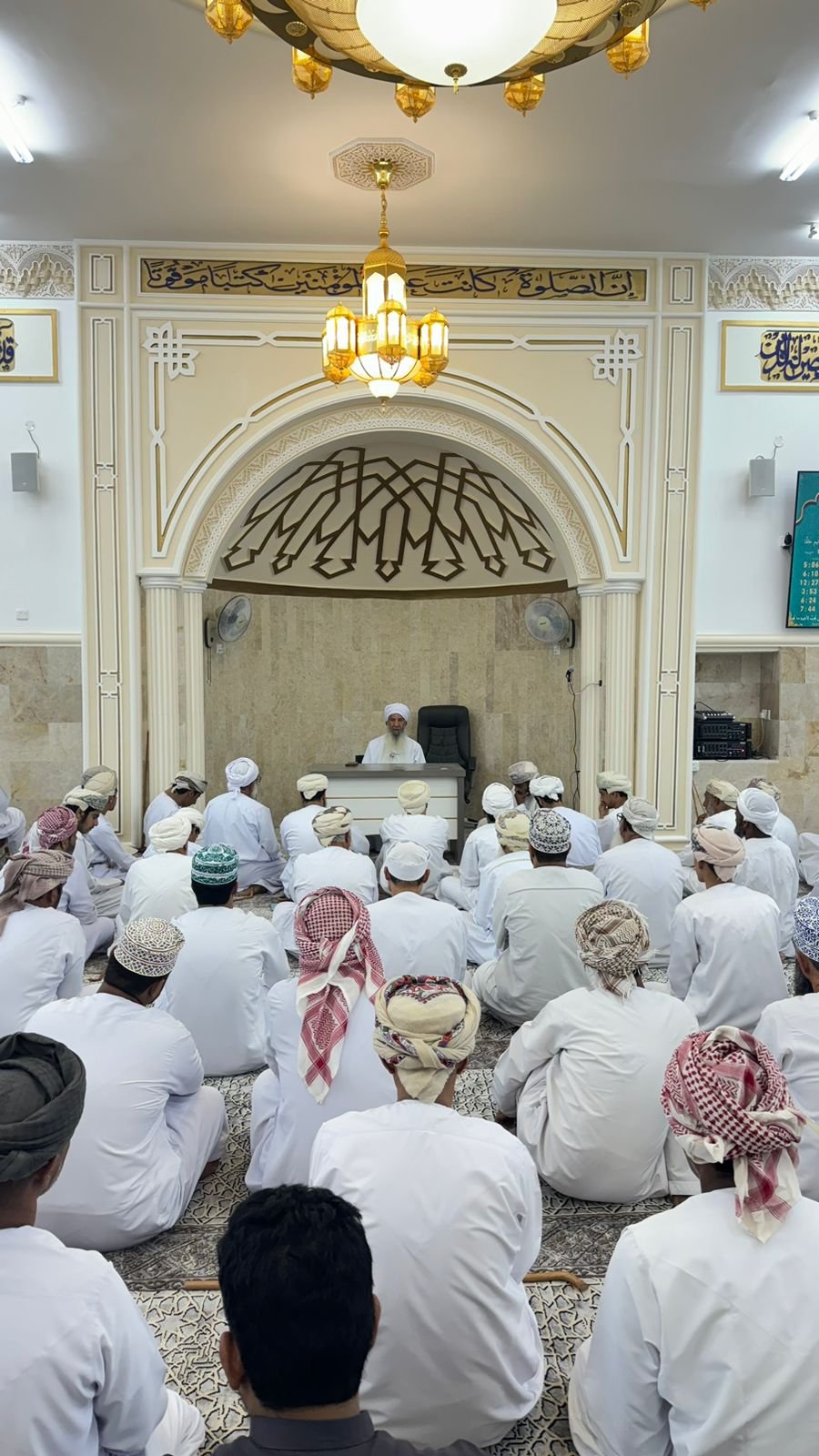 رعى فعاليات حفل الافتتاح الشيخ حمود بن حميد الصوافي بحضور اهالي الولاية حيث القى الشيخ الجليل محاضرة قيمة حول إمامة صلاة الجماعة وما ينبغي اتباعه من احوال الامام في اداء صلاته من شروط اتباع المصلين للإمام .