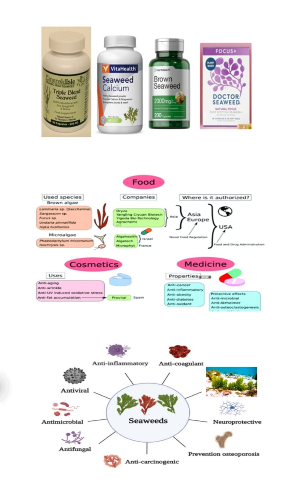 ونظراً لأن الطحالب تعد مصدرا غنياً بالعناصر الغذائية والمواد الفعالة حيويا والمفيدة للصحة والجمال أصبحت تلعب دورا هاماً في صناعة مستحضرات التجميل لغناها بالأحماض الأمينية والمعادن والاحماض الدهنية ومضادات الاكسدة.