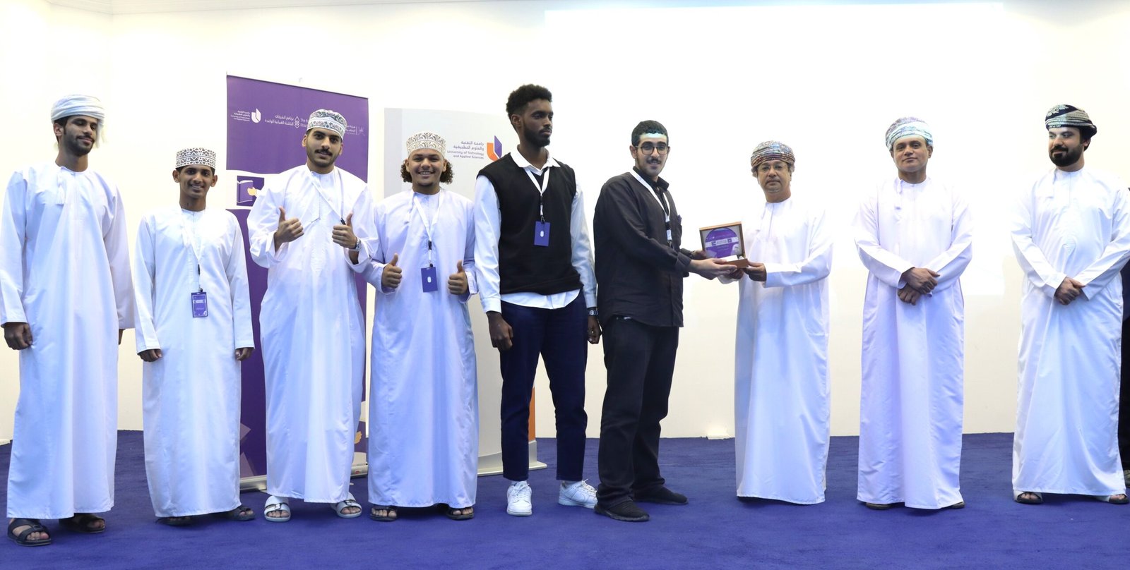 أقيم بجامعة التقنية والعلوم التطبيقية بصلالة حفل تكريم الفائزين في منافسات معسكر المشروعات الطلابية الواعدة الذي نظمته هيئة تنمية المؤسسات الصغيرة والمتوسطة بالتعاون مع الجامعة واستمر 5 أيام.