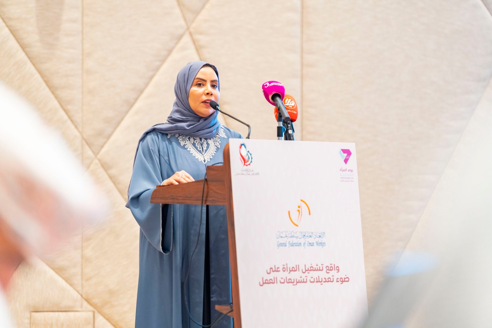 نظّمت لجنة المرأة العاملة بالاتحاد العام لعمال سلطنة عُمان ندوة (واقع تشغيل المرأة على ضوء تعديلات تشريعات العمل)؛ وذلك تحت رعاية المكرمة الدكتورة عهود بنت سعيد البلوشية، عضو مجلس الدولة، ومشاركة عدد من الجهات الدولية والمحلية، شملت منظمة العمل الدولية، ووزارة العمل، ووزارة التنمية الاجتماعية، وصندوق الحماية الاجتماعية، وغرفة تجارة وصناعة عُمان، وعدد من مؤسسات المجتمع المدني، فضلا عن مشاركة عدد من النقابيات والإعلاميات والمهتمات بقضايا المرأة العاملة.