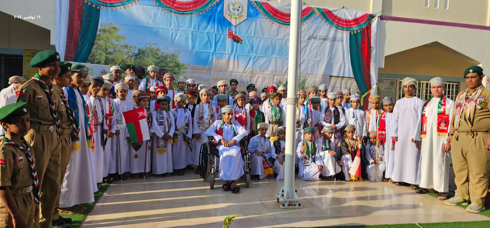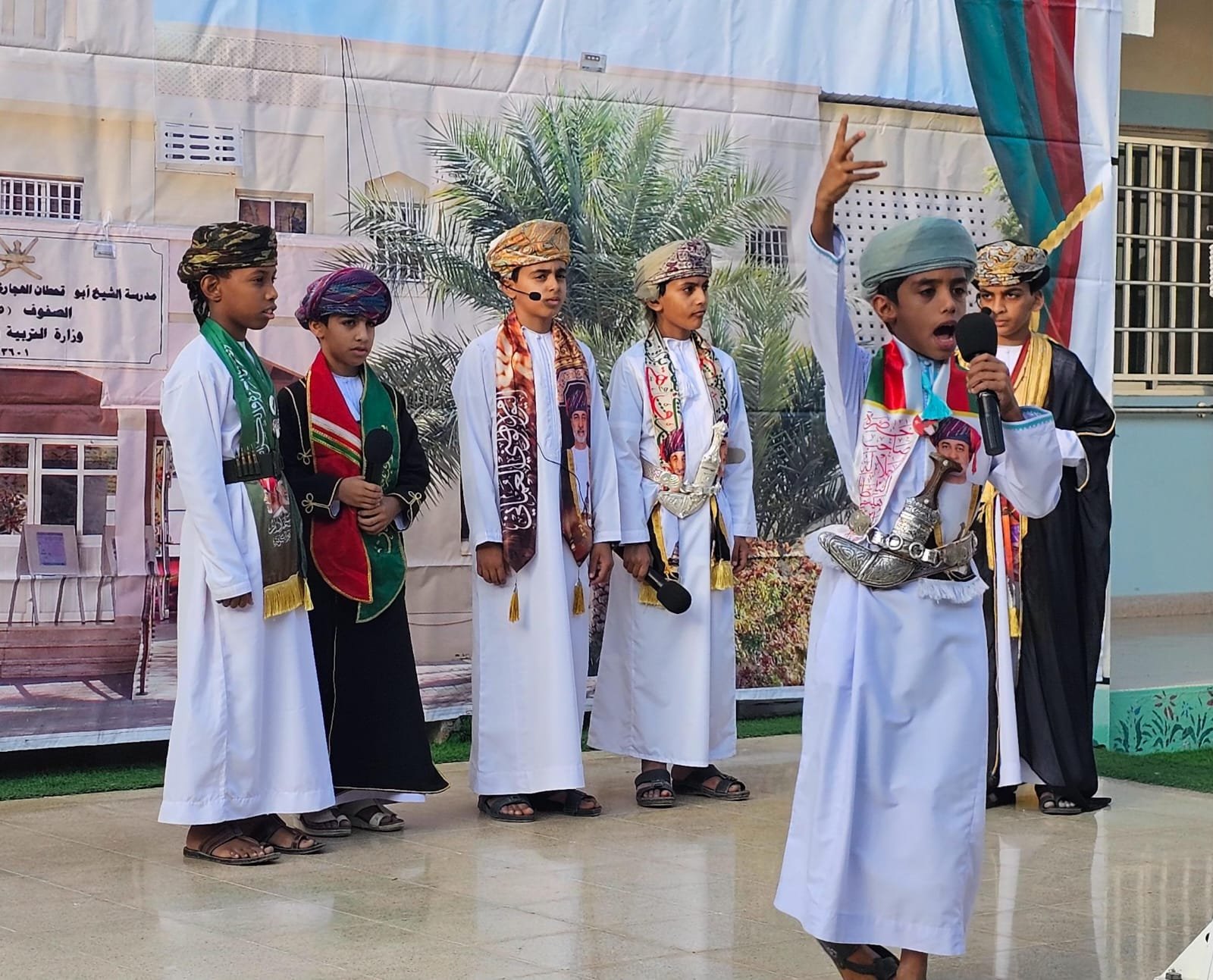 تواصلاً لإحتفالات سلطنة عمان بالعيد الوطني الرابع والخمسين المجيد أقامت مدرسة الشيخ أبو قحطان الهجاري (5-12) بولاية العوابي في محافظة جنوب الباطنة احتفالاً بهذه المناسبة وذلك صباح اليوم ( الثلاثاء ) بحضور محمد بن هلال الخروصي رئيس مجلس أولياء الأمور بالمدرسة وعدد من الأعضاء ومدير المدرسة خالد بن عبدالله الهنائي والهيئة التدريسية والإدارية وعدد من أولياء الأمور بدأ الاحتفال بالسلام السلطاني ثم القرآن الكريم , بعد ذلك تضمن الحفل مجموعة من الفقرات الوطنية التي جسدت أسمى معاني الحب والولاء، وشملت إلقاء كلمات وقصائد وطنية عن إنجازات الوطن، بالإضافة إلى عروض فرقة الكشافة والفنون العمانية.