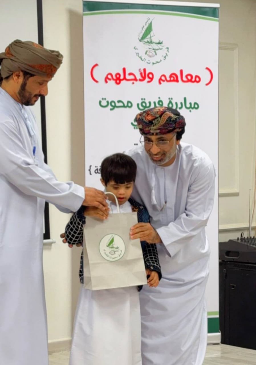 في مبادرة مجتمعية تبناها فريق محوت الخيري بمحوت ، نظم الفريق إحتفالية بمناسبة اليوم الدولي للأشخاص ذوي الإعاقة بمشاركة طلبة مركز الوفاء لتأهيل الأشخاص ذوي الإعاقة بمحوت ؛ حيث أقيمت الاحتفالية تحت رعاية / سعيد بن سيف الحبسي مدير دائرة التنمية الاجتماعية بمحوت وبحضور عدد من المدعوين وأولياء أمور طلبة المركز من آباء وأمهات.