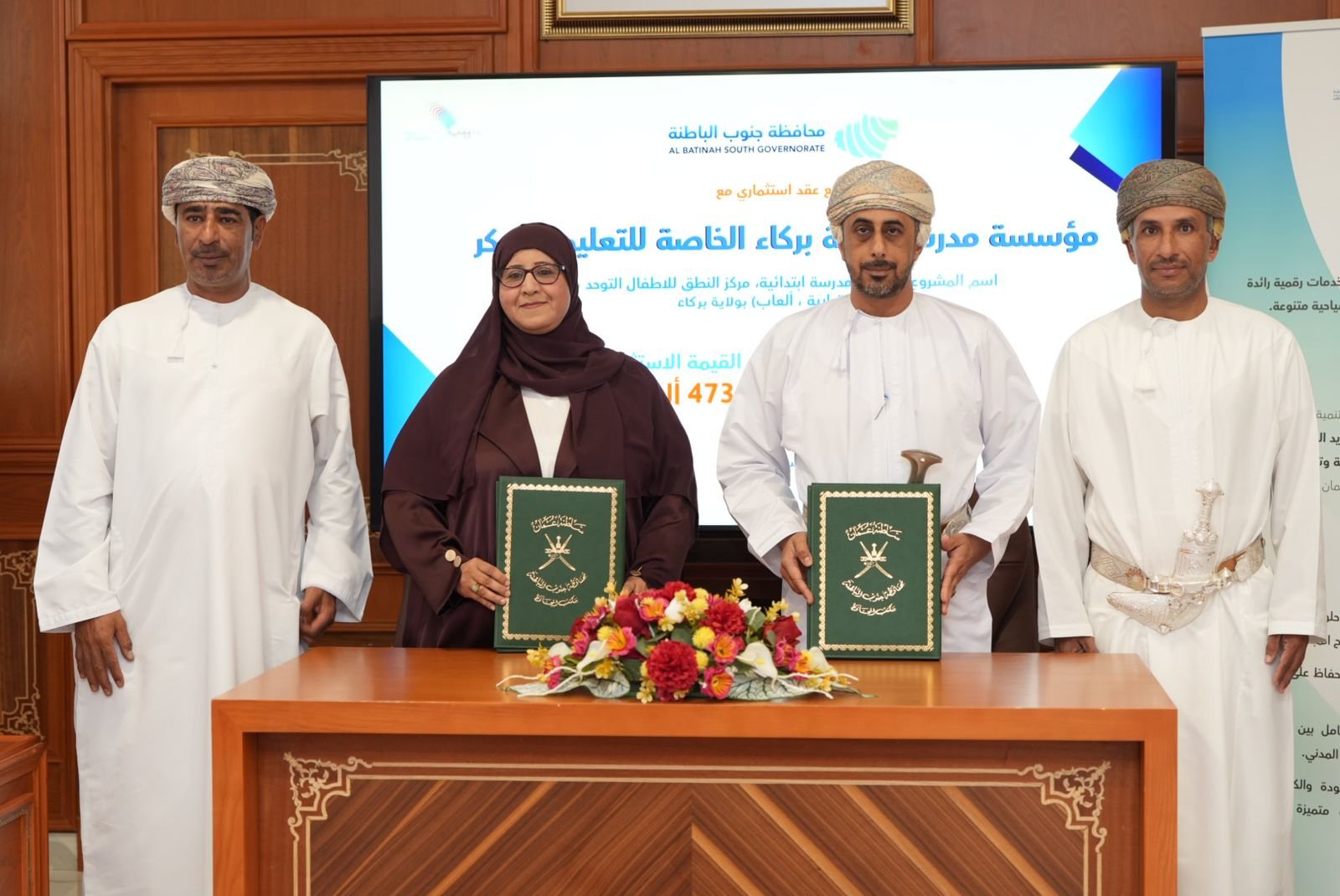 كما تم توقيع عقد لإنشاء مدرسة ابتدائية ومركز نطق للأطفال المصابين بالتوحد، إلى جانب محلات تجارية ومرافق ترفيهية. وقد مُنحت هذه الفرصة الاستثمارية لمؤسسة مدرسة واحة بركاء الخاصة للتعليم المبكر، بعقد استثماري مدته 20 سنة، وعلى مساحة 8,578 متر مربع، وبقيمة استثمارية بلغت 473,206 ألف ريال عماني.