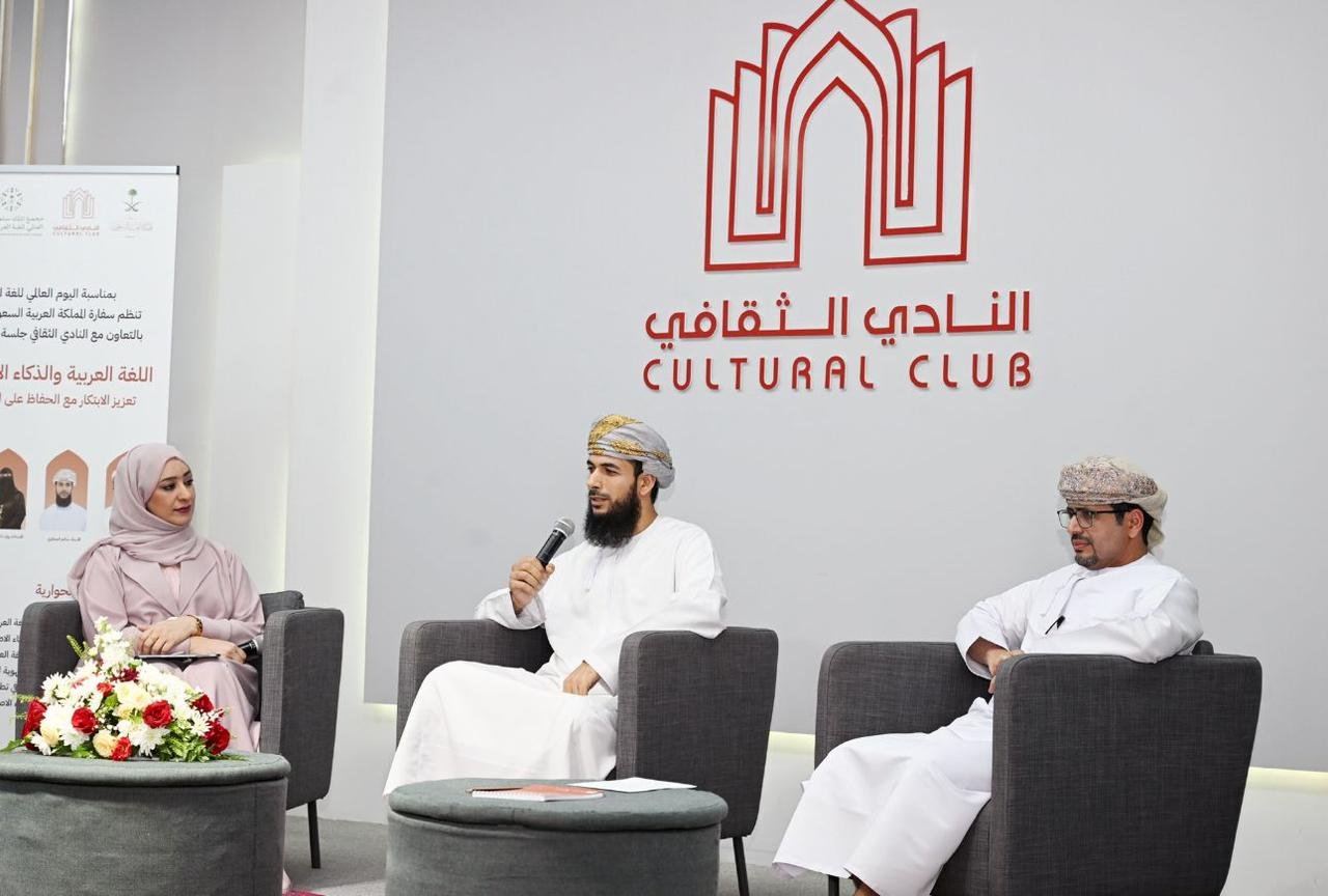 بمناسبة يوم اللغة العربية نظمت سفارة المملكة العربية السعودية بسلطنة عمان بالتعاون مع النادي الثقافي بمسقط جلسة حوارية جاءت تحت عنوان : اللغة العربية والذكاء الاصطناعي ( تعزيز الابتكار مع الحفاظ على التراث الثقافي)