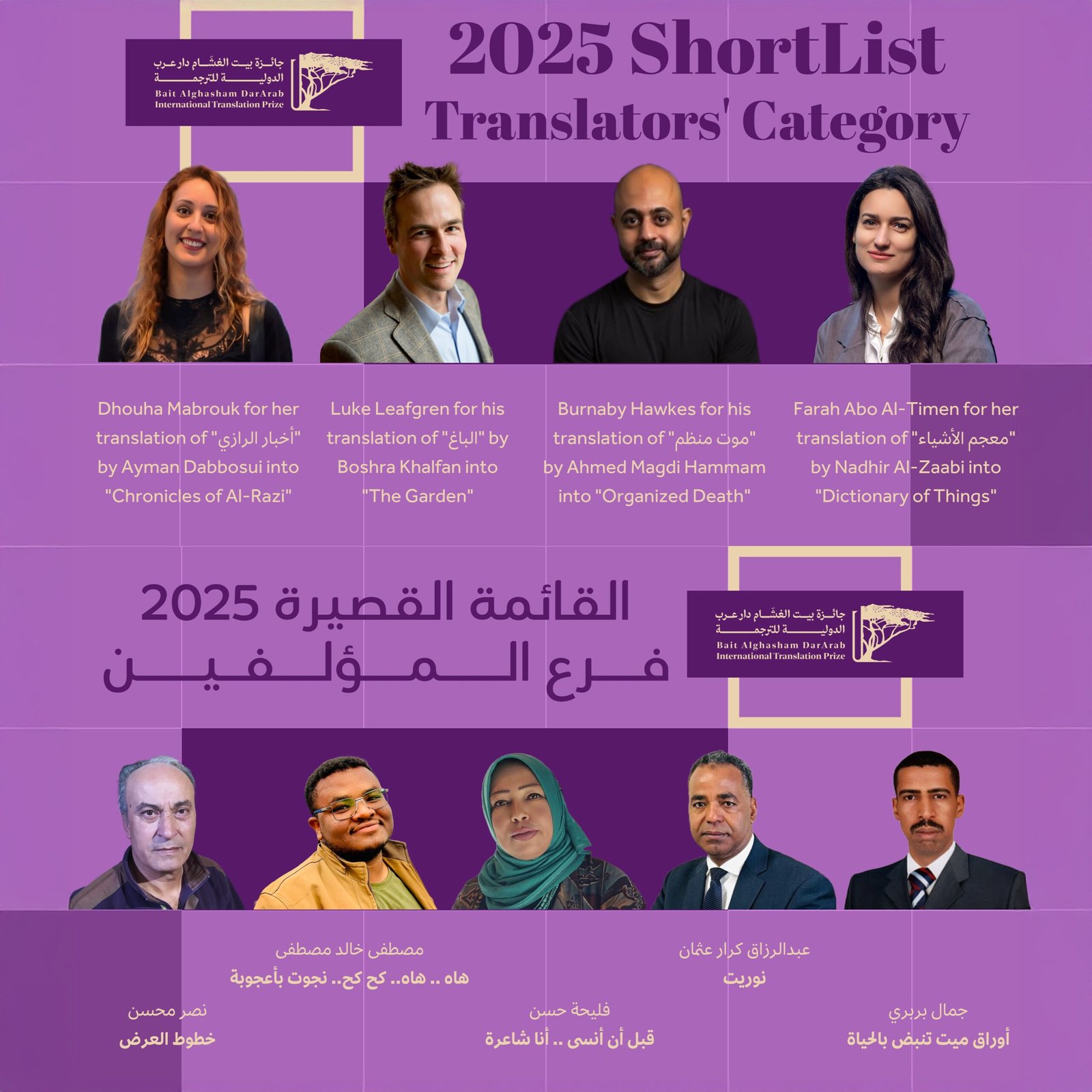 7 يناير – مسقط، سلطنة عمان – أعلنت كل من بيت الغشام للصحافة والنشر والإعلان ودار عرب للنشر والترجمة عن القائمة القصيرة لجائزة بيت الغشام دار عرب الدولية للترجمة لعام 2025، استمرارًا لجهودها في تعزيز حركة الترجمة ودعم الأدب العربي على الساحة العالمية.