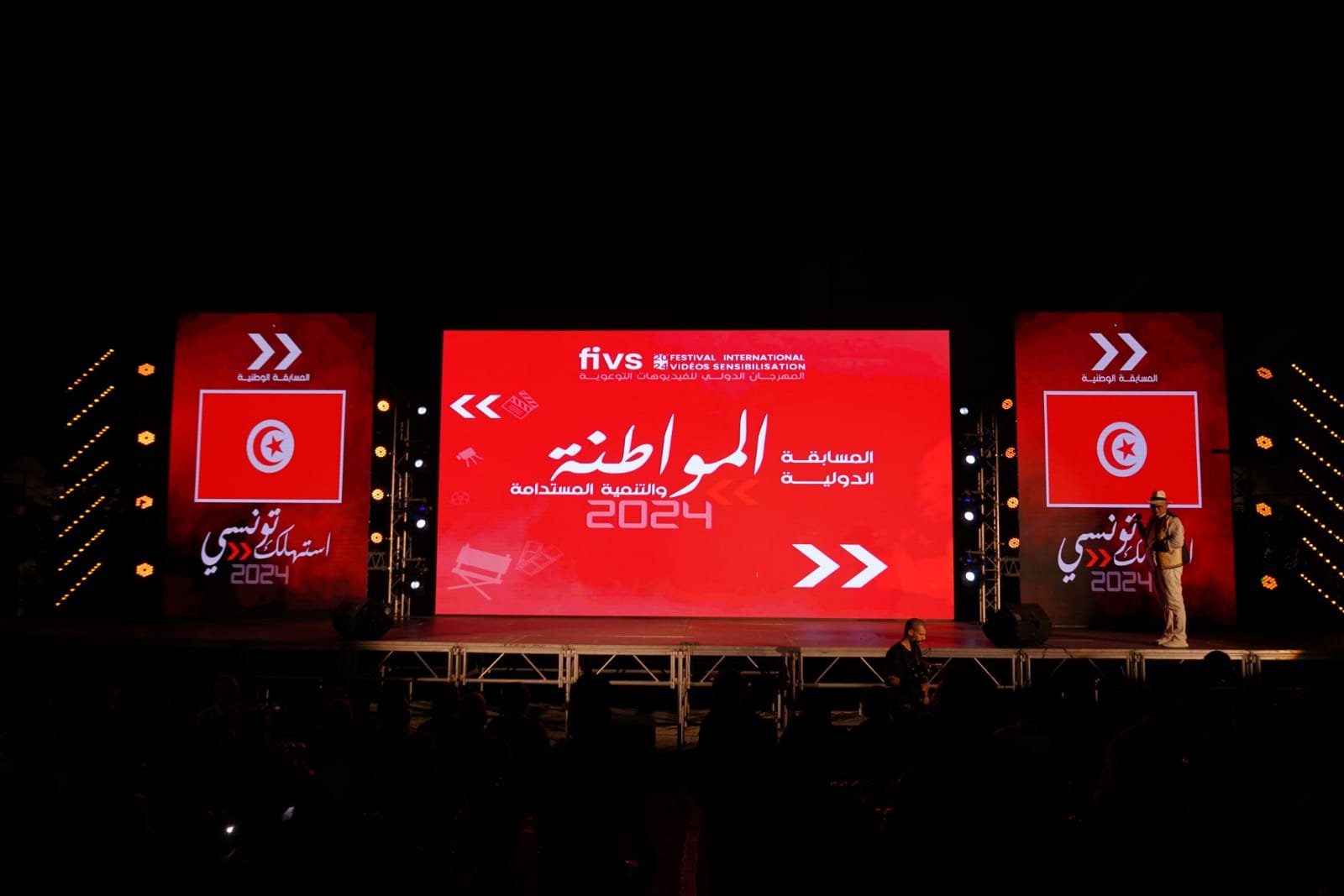 الساحة اكتظت بالزوار الذين توافدوا للاطلاع على أحدث الإبداعات في مجال الفيديو التوعوي. تنوعت الفعاليات التي تم تنظيمها بالمناسبة، حيث شملت عرض الأفلام المقبولة و الإعلان عن لجنة التحكيم كما ألقى عدد من المسؤولين المحليين والمنظمين كلمات أكدوا فيها على أهمية المهرجان ودوره في تحفيز الطاقات الشبابية لإنتاج محتوى هادف يساهم في التغيير الإيجابي بالمجتمع، بمشاركة واسعة من 51 دولة, كما تمیز الحفل بحضور جماھیري كبیر واھتمام واسع من وسائل الإعلام .. هذه الفعالیة، تمت الإعلان عن الفیدیوھات المختارة من قبل لجنة الفرز في المسابقتین: الوطنیة “استھلك تونسي” والدولیة “المواطنة والتنمیة المستدامة”. وقد أظھرت ھذه الفیدیوھات إبدا ًعا وابتكا ًرا في معالجة قضایا الاستھلاك المحلي والتنمیة المستدامة، مما یعكس وعي المشاركین بأھمیة ھذه المواضیع المستدامة.و التنمية وقد سجلت الدورة الرابعة للمھرجان 573 طلب مشاركة في المسابقتین: الوطنیة “استھلك تونسي” والدولیة.” ، استقبل المھرجان 167 فیدیوا توعويا من 34 دولة، وتم اختیار 88 فیدیوا من 20 دولة بعد استیفائھا لشروط وأحكام المشاركة. وقد لاحظت لجنة الفرز الأولي تحسنًا وتطو ًرا من حیث المحتوى والأفكار المتجددة مقارنة بالدورات السابقة. من بین المشاركات: تلقت المسابقة الدولیة 238 مشاركة تونسیة، قُبل منھا 26 فیدیو، بینما تلقت مسابقة “استھلك تونسي” 25 مشاركة تونسیة، قُبل منھا 16. كما برزت الجزائر بمشاركة 82 عملا، تم قبول 9 منھا، في حین شاركت المغرب بـ39 عملا، قُبل منھا عمل واحد فقط. أما العراق، فقد سجل 32 مشاركة، قُبل منھا 8، بینما قُبلت مشاركة واحدة من 10 مشاركات واردة من الھند. وشاركت مصر بـ59 عم ًلا، قُبل منھا 7، وفلسطین بـ3 أعمال قُبلت جمیعھا. من بین المشاركات الأخرى، قُبلت أعمال من فرنسا، الأردن، الصین، سوریا، عمان، إیران، لبنان، إیطالیا، الیمن، والباكستان. كما تم تسجیل مشاركة واحدة من ھولندا وقُبلت. كما تم خلال ھذا الحفل تكلیف رئیس وأعضاء لجنة التحكیم الدولیة من قبل المدیر المؤسس السید ولید بن حسن و مدیر الدورة الرابعة السید أیمن دردوري، الذین سیقومون بتقییم الفیدیوھات المشاركة وتحدید الفائزین في المھرجان, وھم كالأتي: • الممثل القدیر صلاح الدین مصدق من تونس: رئیس لجنة التحكیم • الممثلة جمیلة المبروك من لیبیا: عضوة لجنة التحكیم • الدكتور السنیمائي دلیل بلخوذیر من الجزائر: عضو لجنة التحكیم • الناقد والمؤلف المسرحي خالد سلیمان من مصر: عضو لجنة التحكیم • المخرج الشاب نصر الدین رقم من تونس: عضو لجنة التحكیم وأعرب رئیس لجنة التحكیم الممثل القدیر صلاح الدین مصدق عن سعادتھ بالمستوى الرفیع للأعمال المشاركة، مشیرا إلى أن الاختیار سیكون صعبًا نظرا لجودة الفیدیوھات المقدمة.